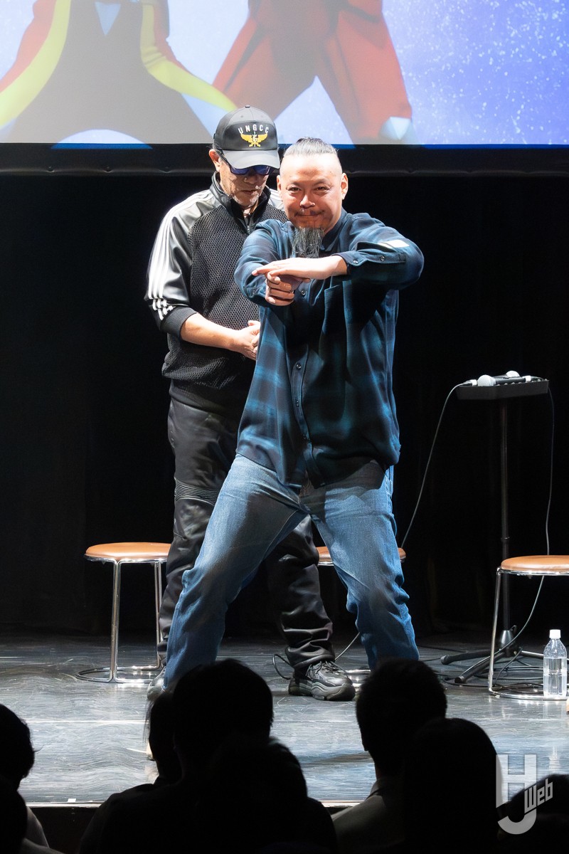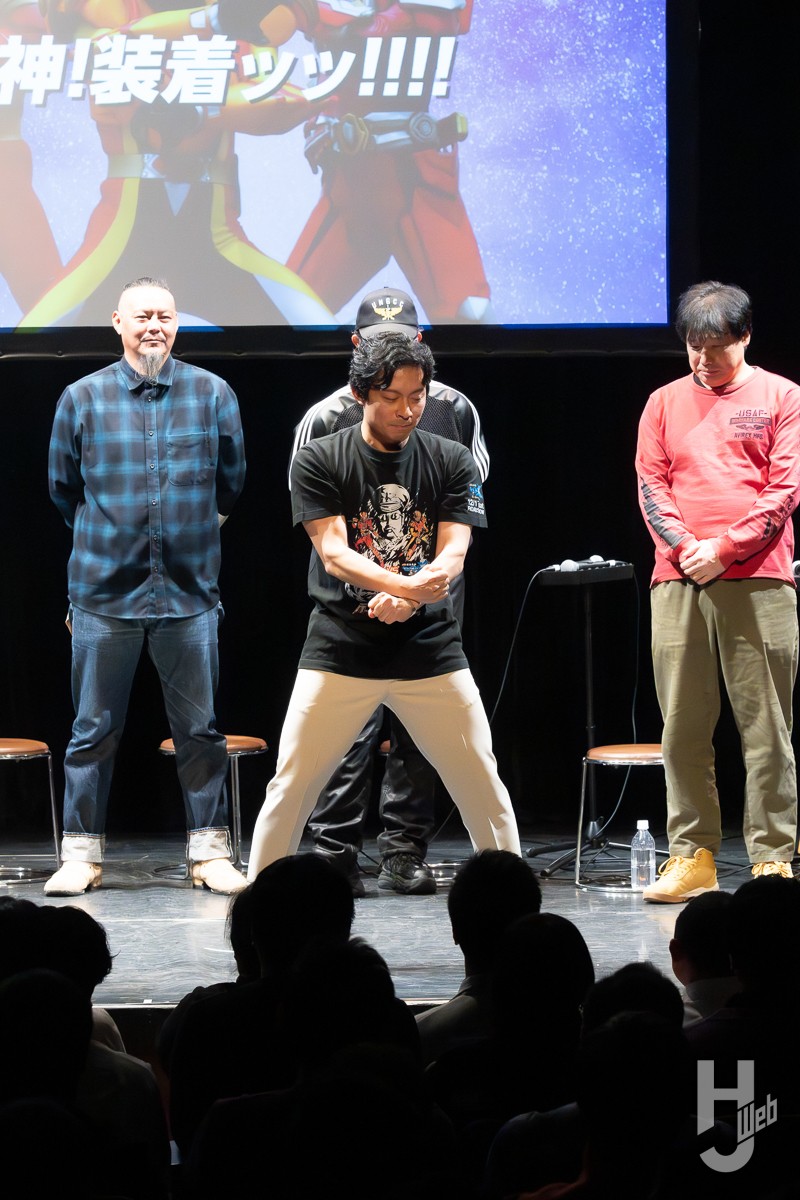 そしてこのコーナーには欠かせないアクション監督・松井哲也が客席から再び登壇。当時さながらの「よーい! アクション!!」に合わせ、トラブルを挟んで3回のアクションを披露した後に「装着」が完了した。