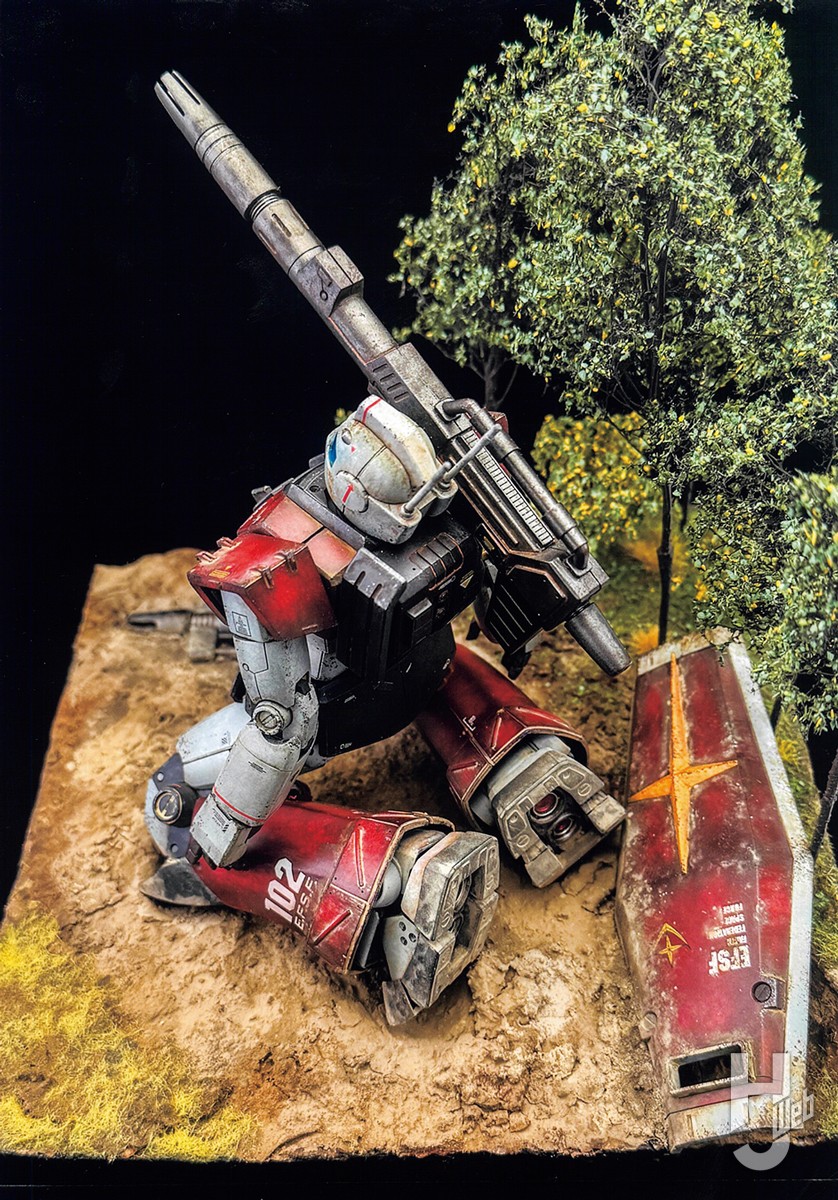 戦争に、戦うことに、争うことに疲れ切った兵がヒザをつき天を仰ぎながら、ただひたすら争いの終結を願う景色を切り取りました。MSで情景を表すときに、フィギュアを使わず、機械にどれだけ人間としての感情を表現できるか挑戦してみました。