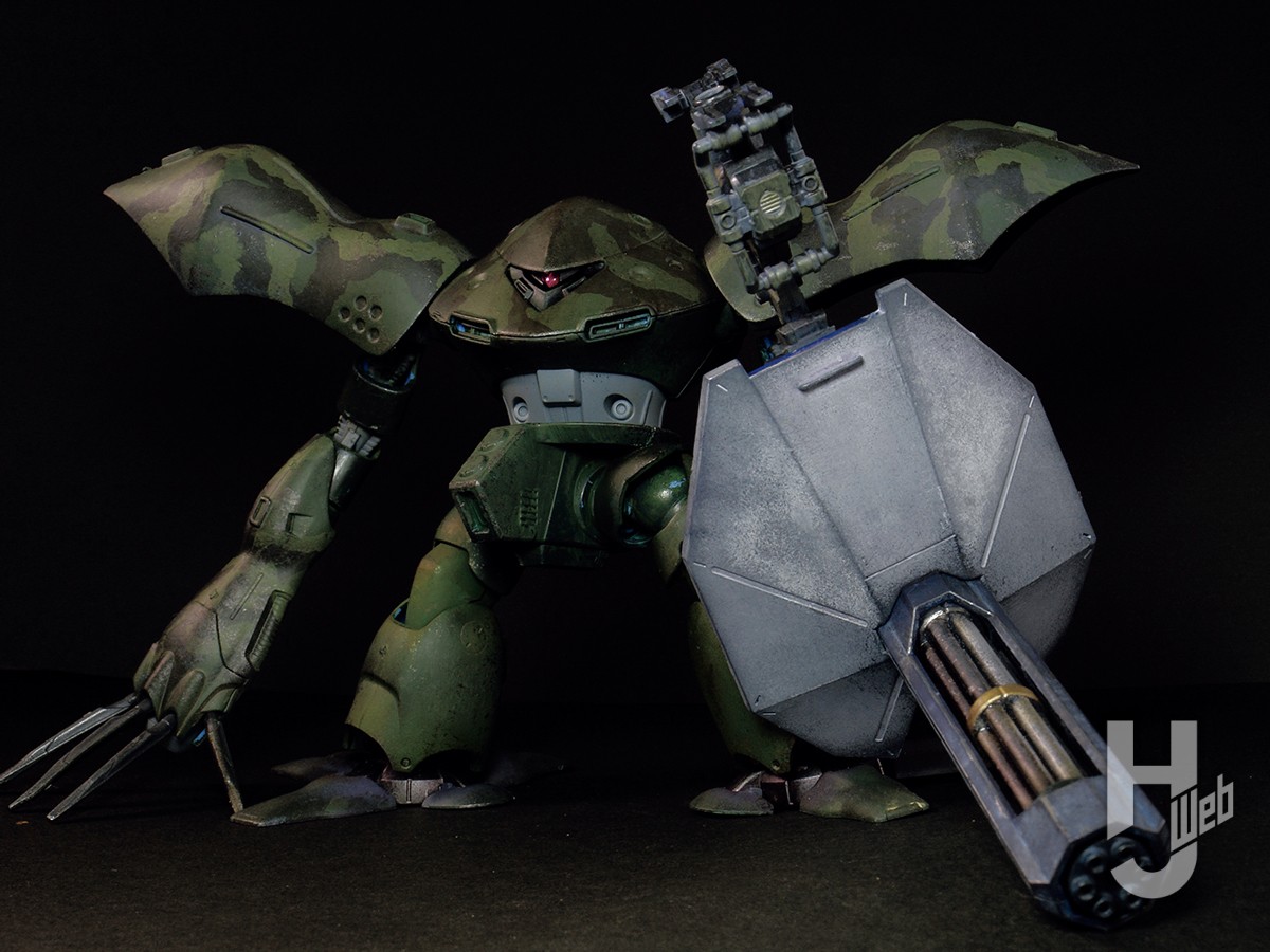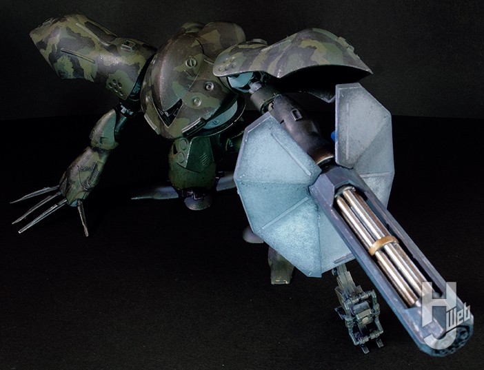 製作期間約1年。スカート、動力パイプ、シールド、スパイク、太モモ、アンテナの大型化。脚部とランドセルのスタビライザーの可動化。各部ディテール追加。