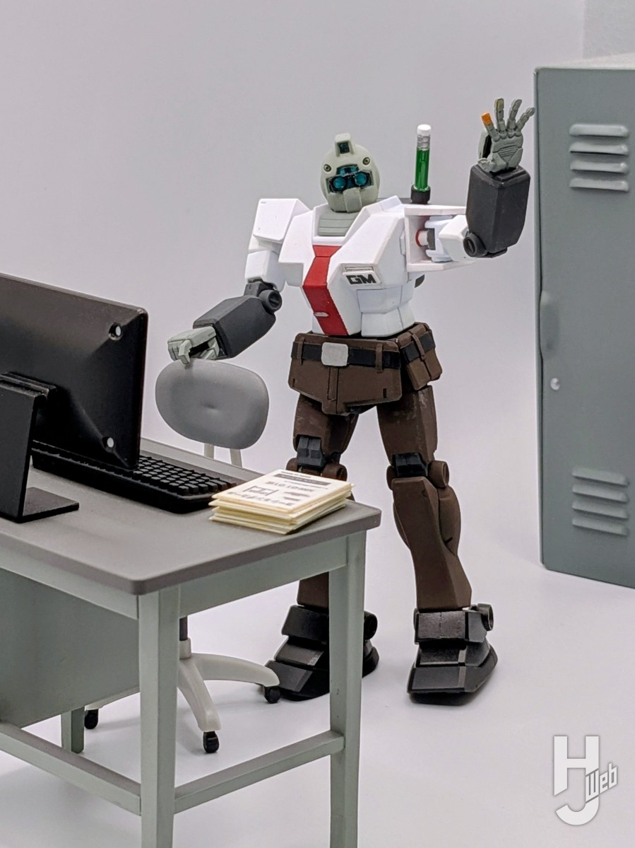 塗装でサラリーマン感を出すだけでなく、きちんと小物を使ってより雰囲気を出しているのが、個人的にポイント高かったです。特に、人差し指に指サックしてるのが好きです(笑)。