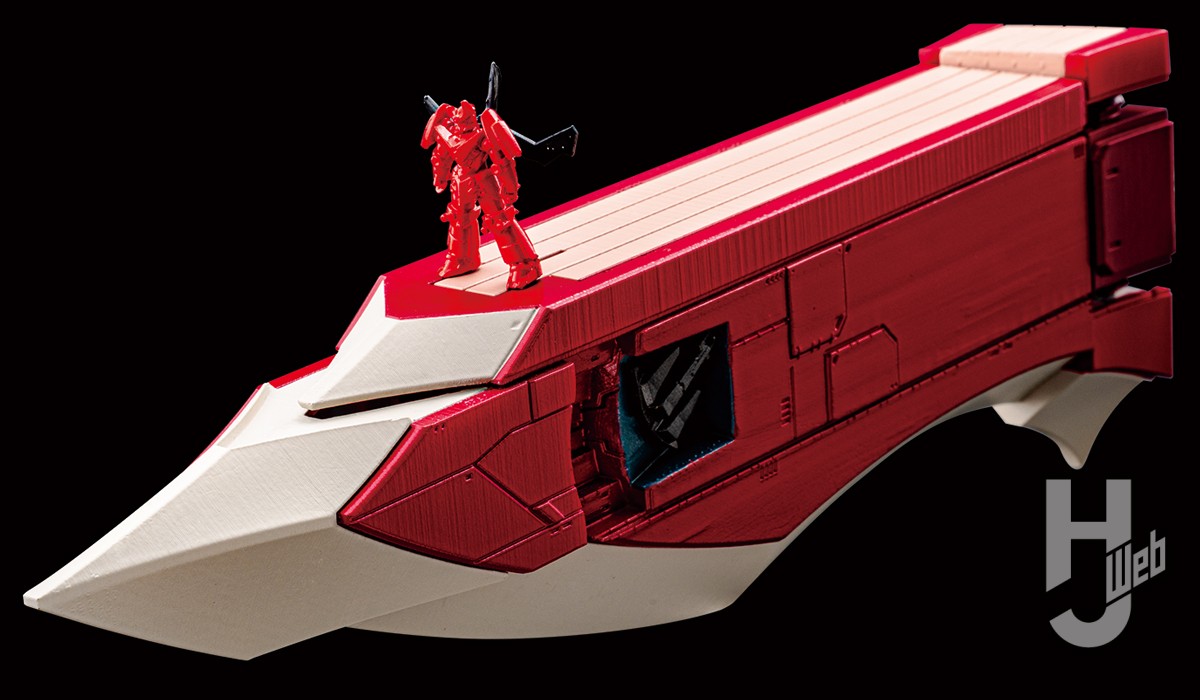 『天元突破グレンラガン』(2007)より、主人公たち大グレン団の母艦・ダイグレンがPOSE+メタルシリーズで立体化。全高約33cm、前後幅約50cm の巨体の中には無数のギミックが詰め込まれている。メイン写真のように艦体の左側をガバっと開けられる「サイドオープン展開構造」として設計されており、艦内構造物がところ狭しとモールドされているぞ。