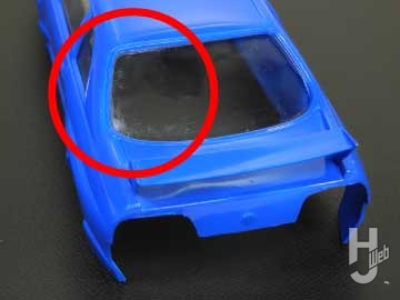 ▲透明パーツを瞬間接着剤で貼ったところ、周辺に白い曇りがついてしまうことがあります。これは接着剤が気化した成分の影響です。硬化促進剤を先塗りしておくと低減できます
