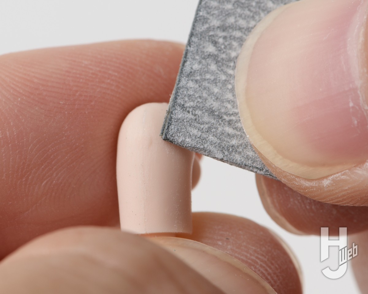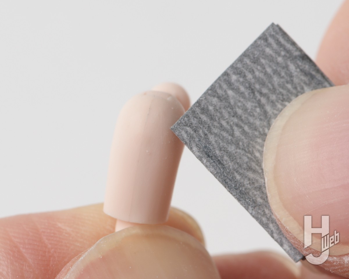 サンダルの端など硬い物のゲート跡に使いました。こちらもパーツ表面をキレイにできるパワーアイテムです。ツヤツヤの表面が作れる他、メラミンスポンジでこすると周囲のプラ地のツヤ感と合わせることもできます。