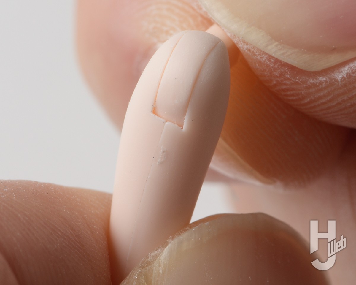▲ 可動部の削り加工後。パーティングラインも見えなくなり、キレイな肌色パーツになりました