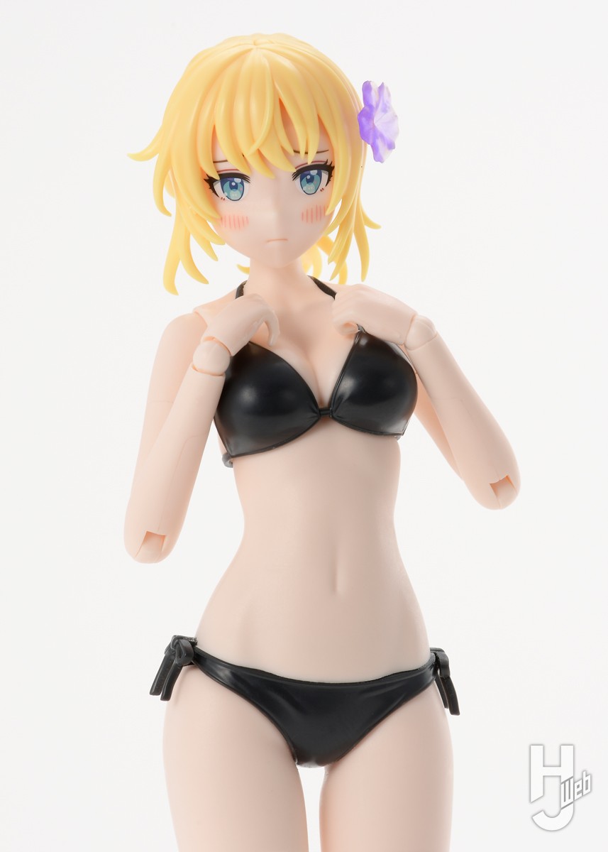 水着系のガールズプラモは、肌面積が多いだけに、合わせ目処理やパーティングラインの処理が地味に効いてきます。ヤスリの番手をしっかり選んで、段階をひとつひとつ上げれば、プラスチック感のある表面から、滑らかなきめ細かい肌に変えることができます。肌の成型色の透明感を活かしつつ、水着をよりキレイに魅せる、ヤスリがけをうまく活用してみてください。