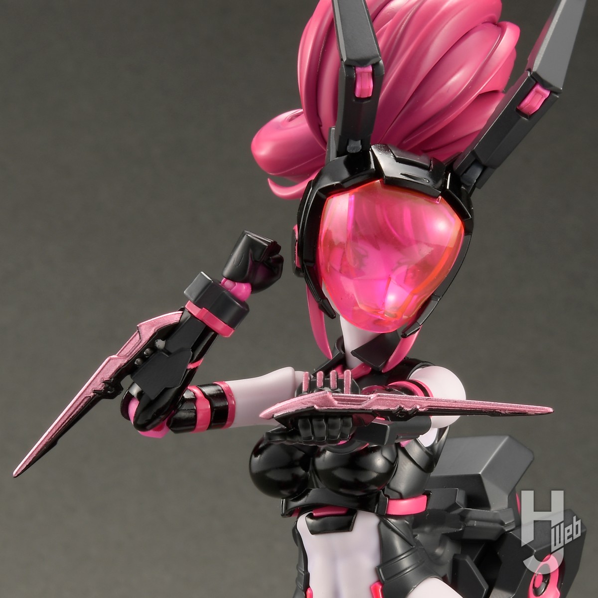 卓匠によるガールズプラモ「アニマサーキット」は動物をモチーフにした美少女ヒューマノイドをキット化するシリーズで、第1弾はウサギをモチーフにしたヴィオ・ザ・ラビット。通常状態から武装状態への換装という定番のフォーマットを押さえつつ、鮮烈で印象に強く残るデザイン、細かなパーツ分割による色再現、ボリューム満点のセット内容など、新興シリーズながらも注目点満載のアイテムとなっている。SIEBENによる作例は、パーツ整形と細やかな塗装のフォローでキットの素性のよさをより引き立てて製作。見どころ豊富な新シリーズをじっくり楽しんでいる。