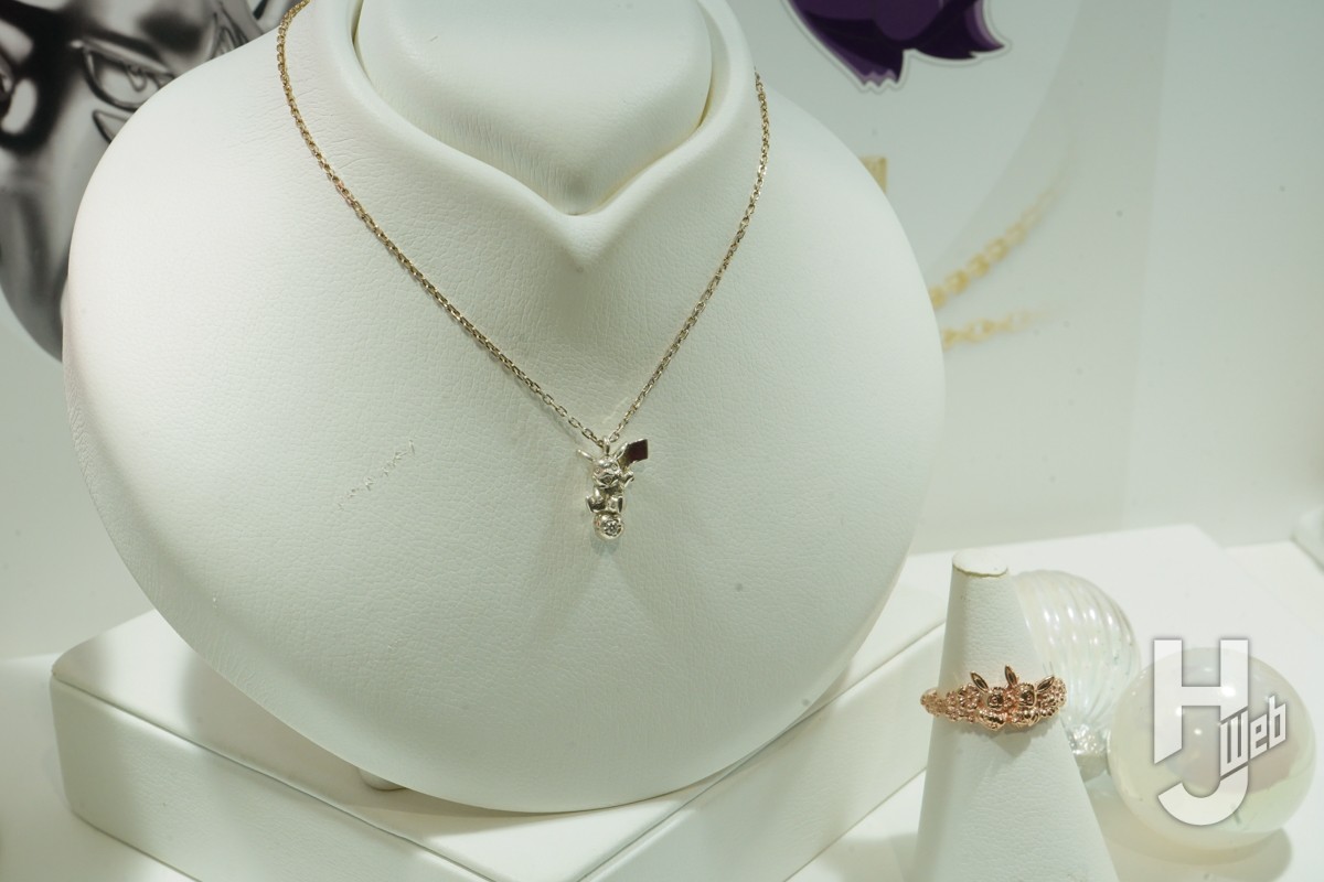 ウルトラマンやゴジラ、エヴァンゲリオンからサンリオキャラクターまで、幅広い作品とコラボした時計やアクセサリー、さらには純金フィギュアまでがショーケースに並ぶ店内は、まさに“アニメ×ジュエリー”の世界を体感できる空間となっている。