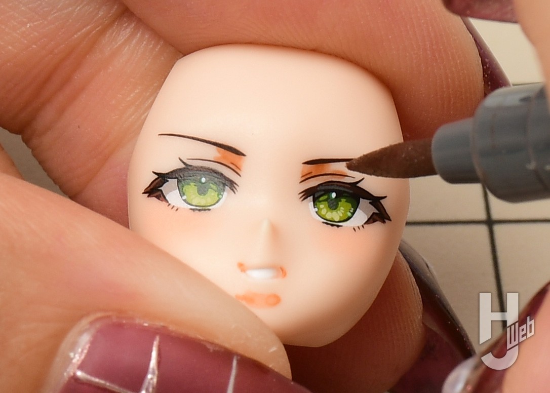 ▲ 今回、付属するフェイスパーツ3種にはすべて同じ仕上げを施しましたが、アイシャドウやリップの色を個々に変えてもよかったかもしれません……。次回以降チャレンジしてみます!