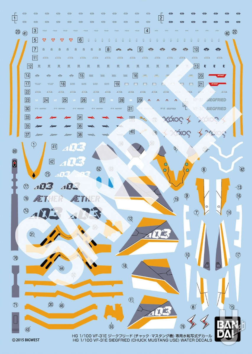 HG 1/100 VF-31E ジークフリード(チャック・マスタング機)専用水転写式デカール