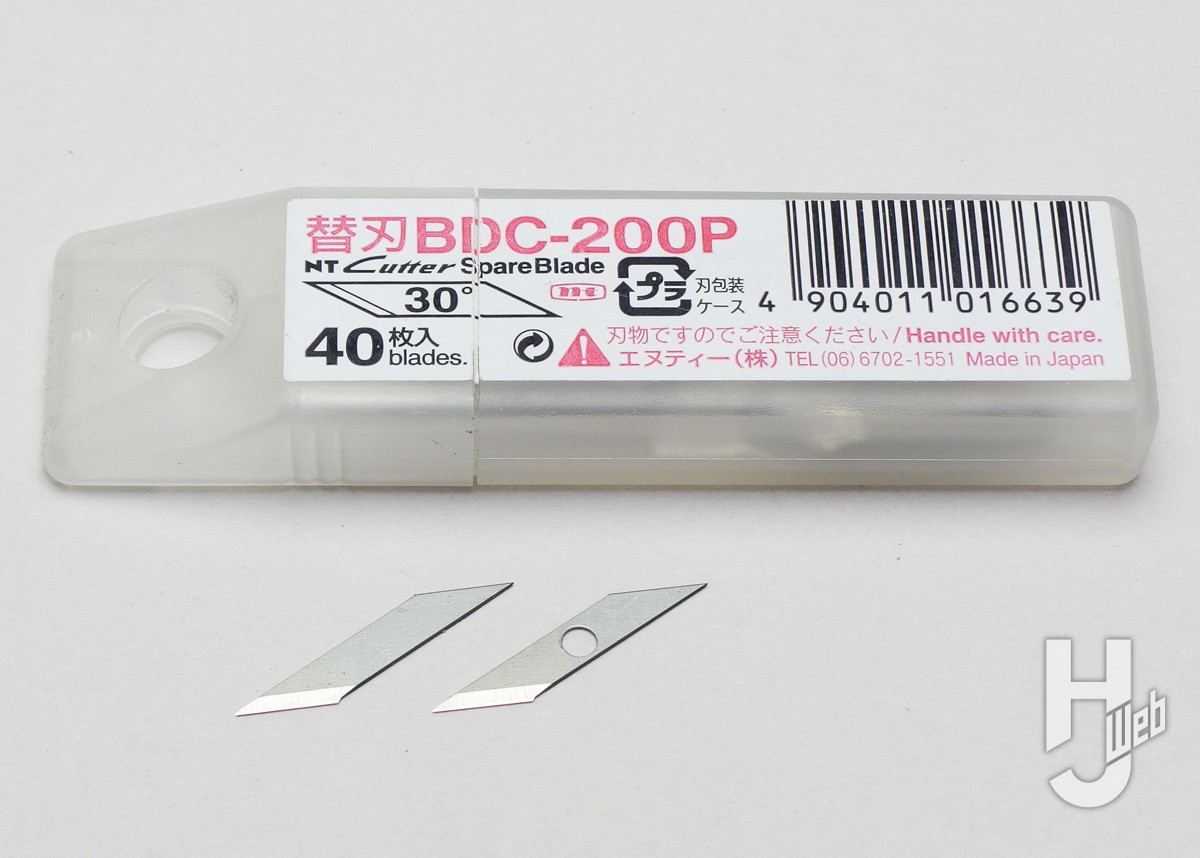 ▲製品にはNTの替え刃BDC-200Pが1ケース付属し、傷んだら交換できます。この刃で切り込める素材が切断対象となります。ただし穴の開いた刃は使用中に割れる危険があるので使用できません
