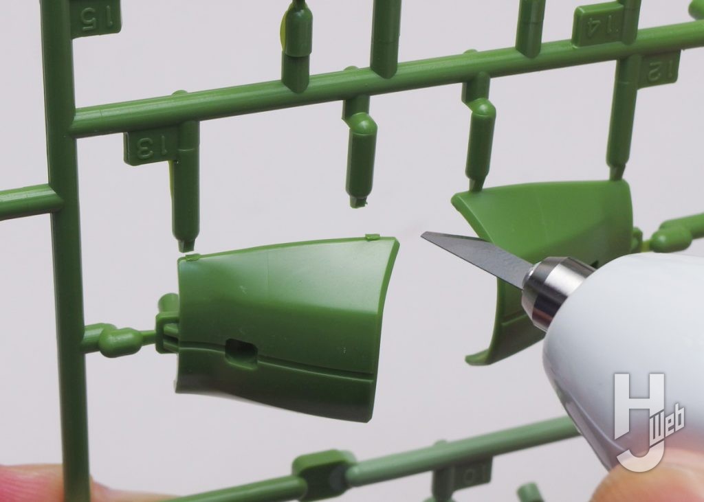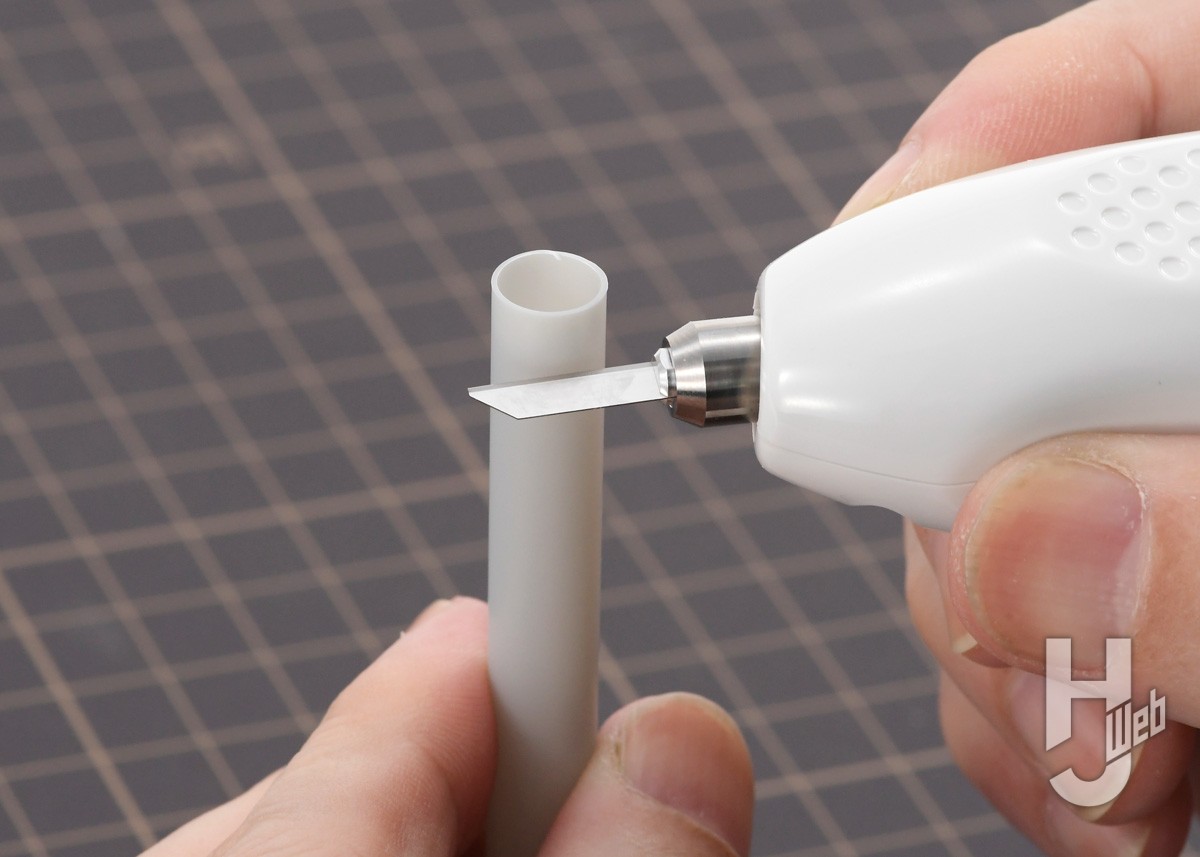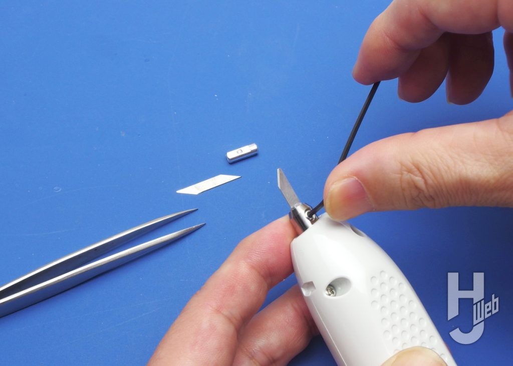 「ZO-40レジンⅡ」の「Low」モードと別売の「薄刃」を使って、プラパーツを切断。使い勝手や“溶け”の具合を比較してみます。