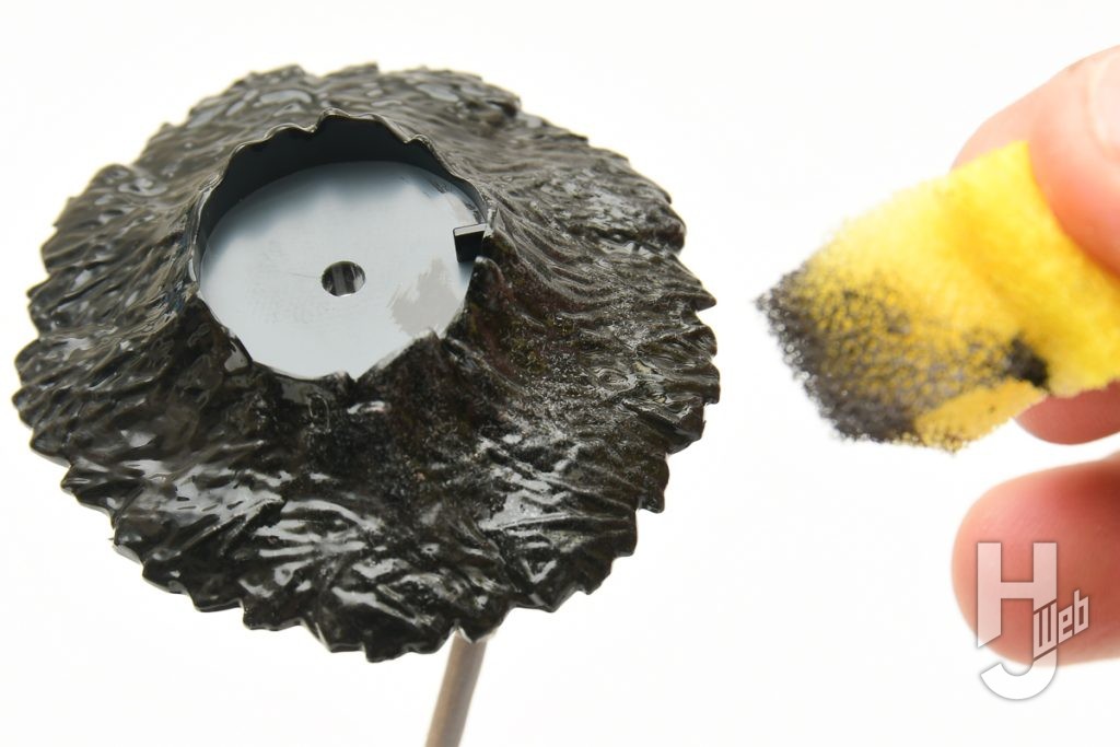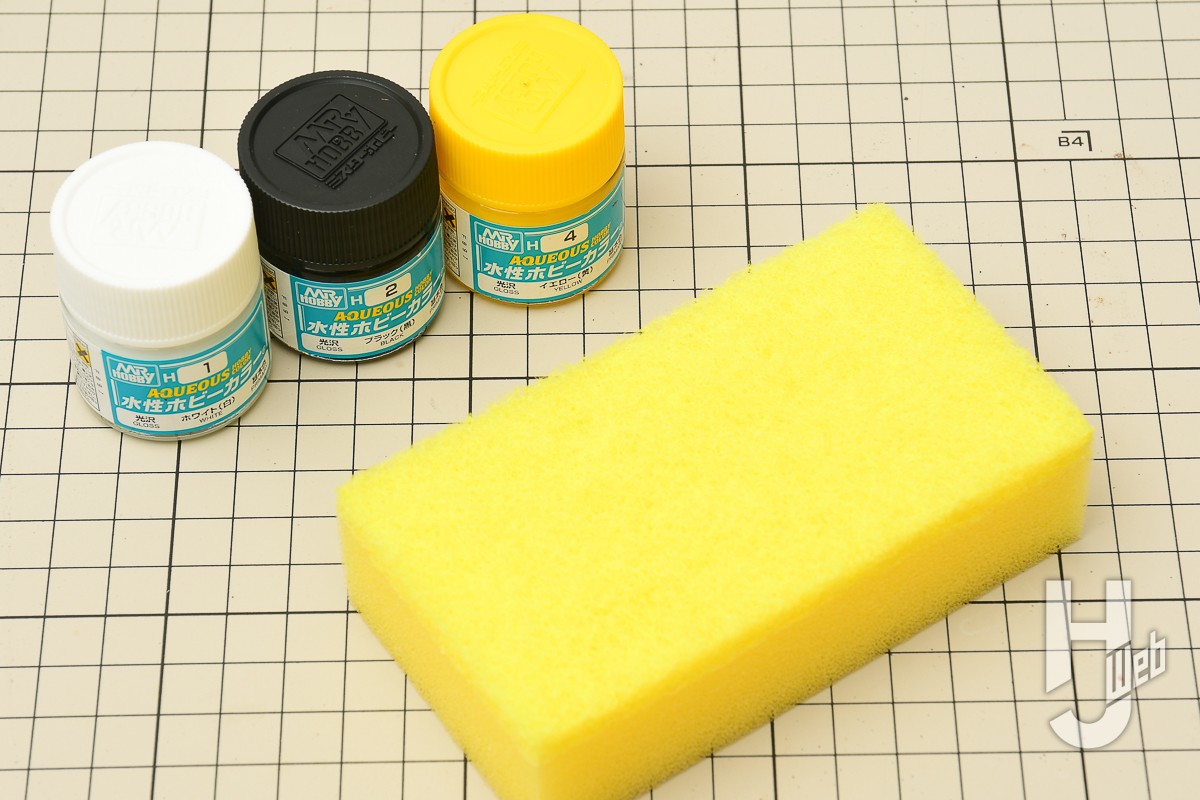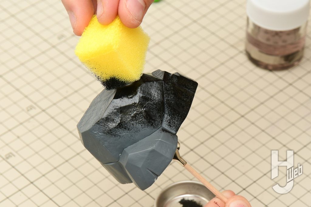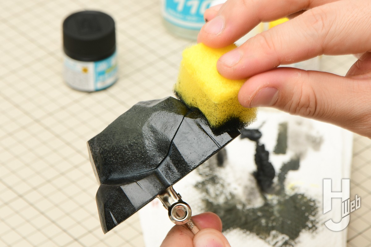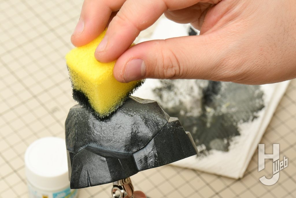 ▲ 今回は筆ではなく、スポンジを活用。スポンジを小さくきってまずはブラックを塗布します