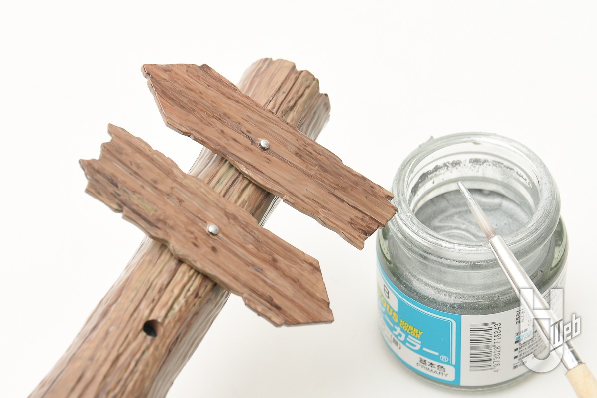 「30 MINUTES FANTASY」シリーズのモンスター&情景パーツのセット「カスタマイズストラクチャー」を水性ホビーカラーで塗装製作。第1回では「丸太」を塗装しました。今回は材質が変わり「岩」の塗装に挑戦、さらに地面に木が刺さった「標識」もモデルもまとめて攻略していきます。