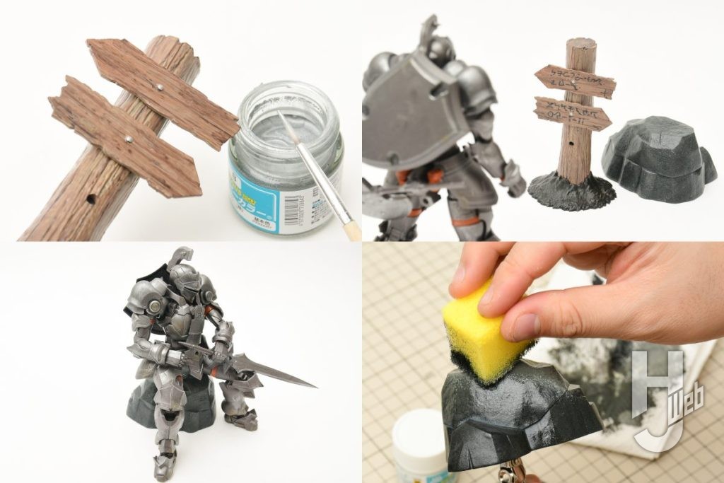 岩肌をスポンジ塗装で攻略!年始模型始めにピッタリ、30MF「カスタマイズストラクチャー」+「水性ホビーカラースターターセット」で塗装を楽しもう(第2回:岩&標識を塗装)【30 MINUTES FANTASY】