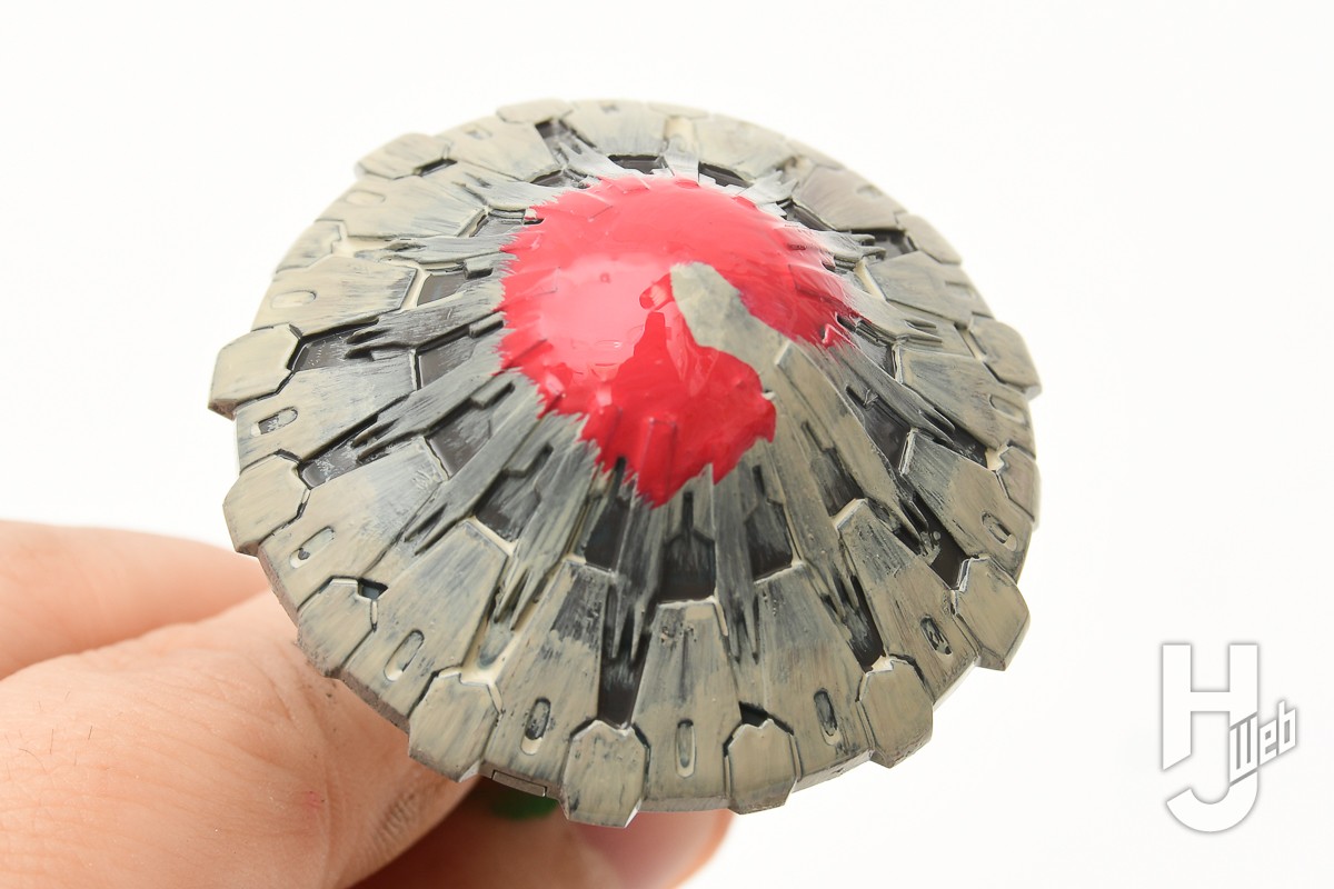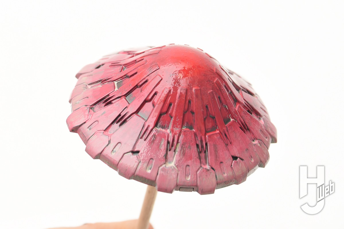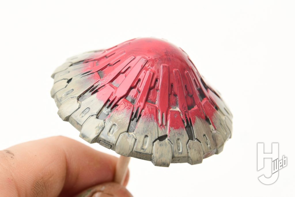▲ 笠の上面はレッドで塗装します。基本色そのままで塗ると少し色が強いので、カーキ色を混ぜて少し色味を抑えています