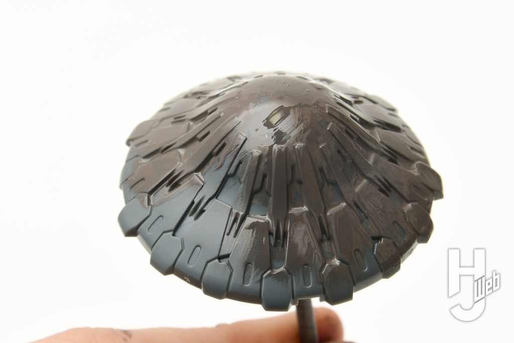 ▲ 2、3回ほど塗り重ねるとこのような仕上がりに。多少の筆目は気にせず、どんどん塗り重ねていきましょう。笠の部分は中心から外側へ形状の流れに沿って筆を動して塗装しています