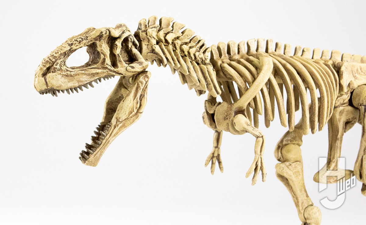 ▲ギガノトサウルスはティラノサウルスと比べると細身だが、それでも巨大な頭骨や短い後肢も相まってどっしりした体型だ。キットは恐竜ビルドの都合もあってか、実際の復元骨格と同様、かなりほっそりとしたスタイル。ここ数年の最新研究の成果を存分に盛り込んでいこう