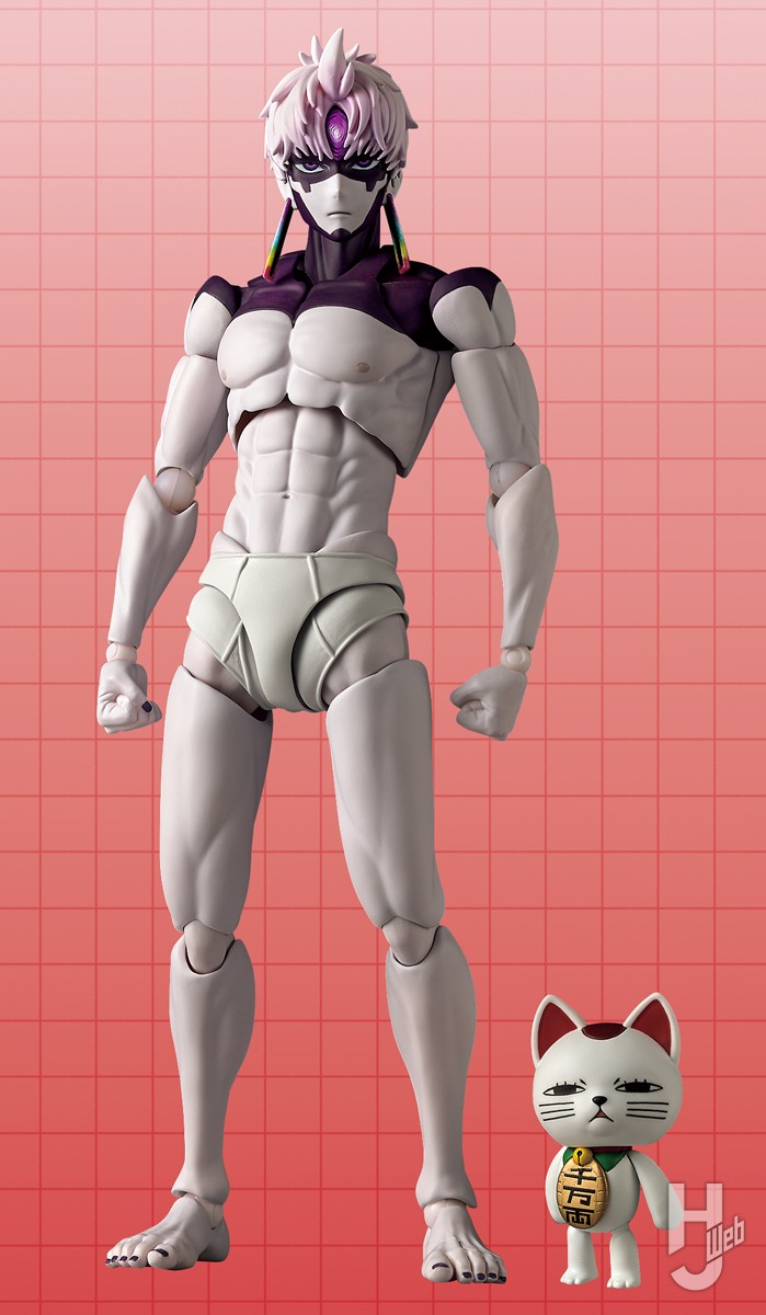 リボルテック『ダンダダン』シリーズ第2弾は、「ジジ」が「邪視」によって変身した姿で登場! 細マッチョなボディにブリーフ一丁というインパクトのある姿に、可動箇所を多数搭載。特に股関節に関しては、蹴りを中心にしたバトルスタイルを表現するため、広い可動範囲を確保している。さらに攻撃に使う「呪いの玉」は、光の当たり方で色が変わって見える特殊塗装。ターボババア(招き猫)も付属するぞ!