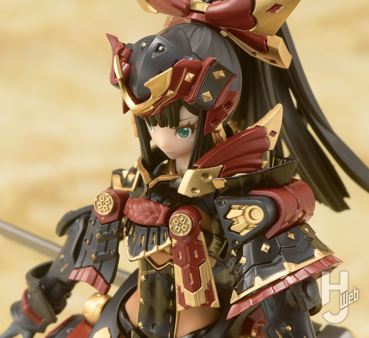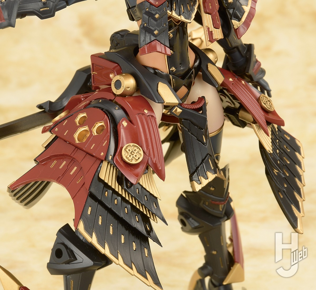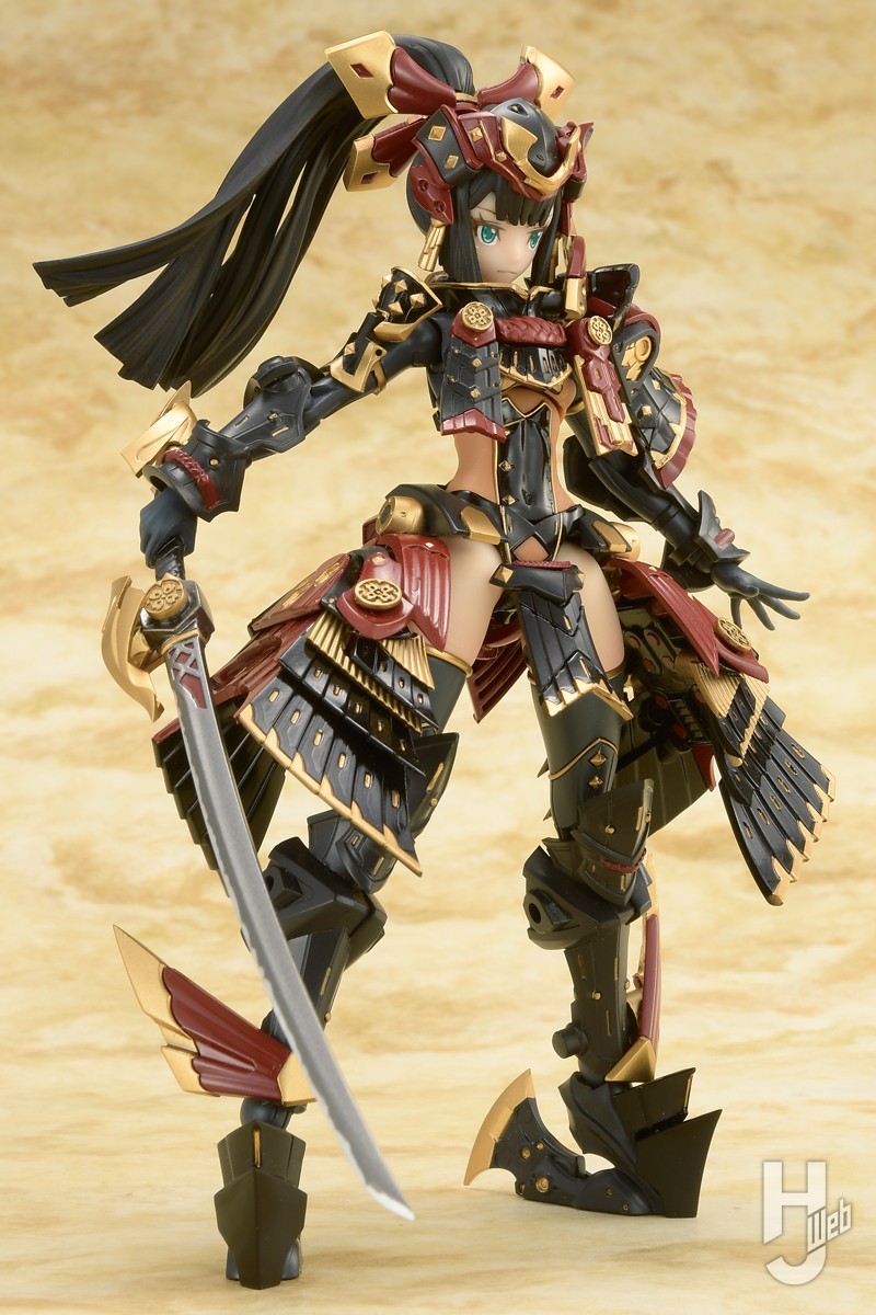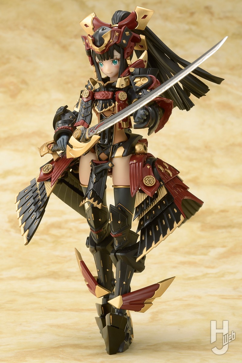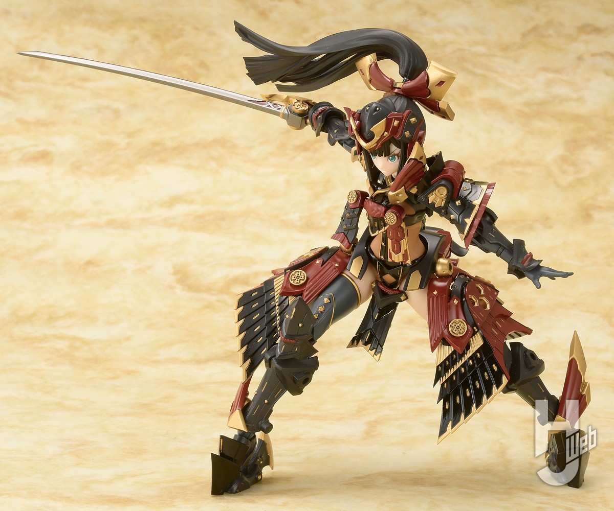 ▲漆黒を基調に赤と金で装飾された煌びやかなデザインの甲冑。黒はドラセナ&ネビュラのようなグロス成型となり、細かな装飾まで造形で再現される。刀は腰のマウントパーツに佩くことが可能