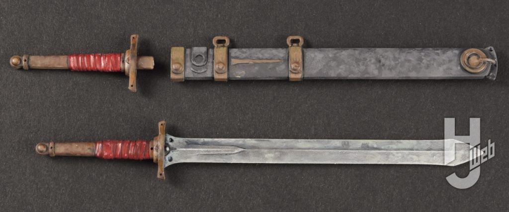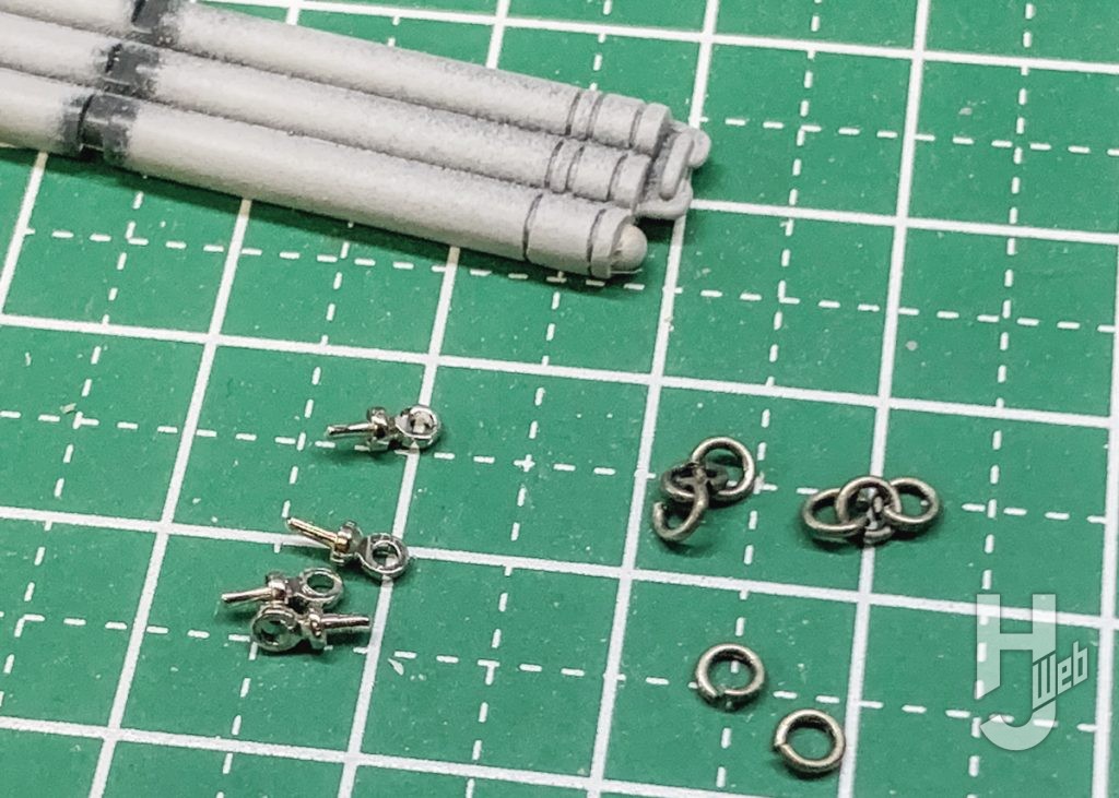 ▲三節棍は展開状態をプラ棒から新造。それぞれをつなぐチェーンはアクセサリーパーツの丸カンなどで再現している