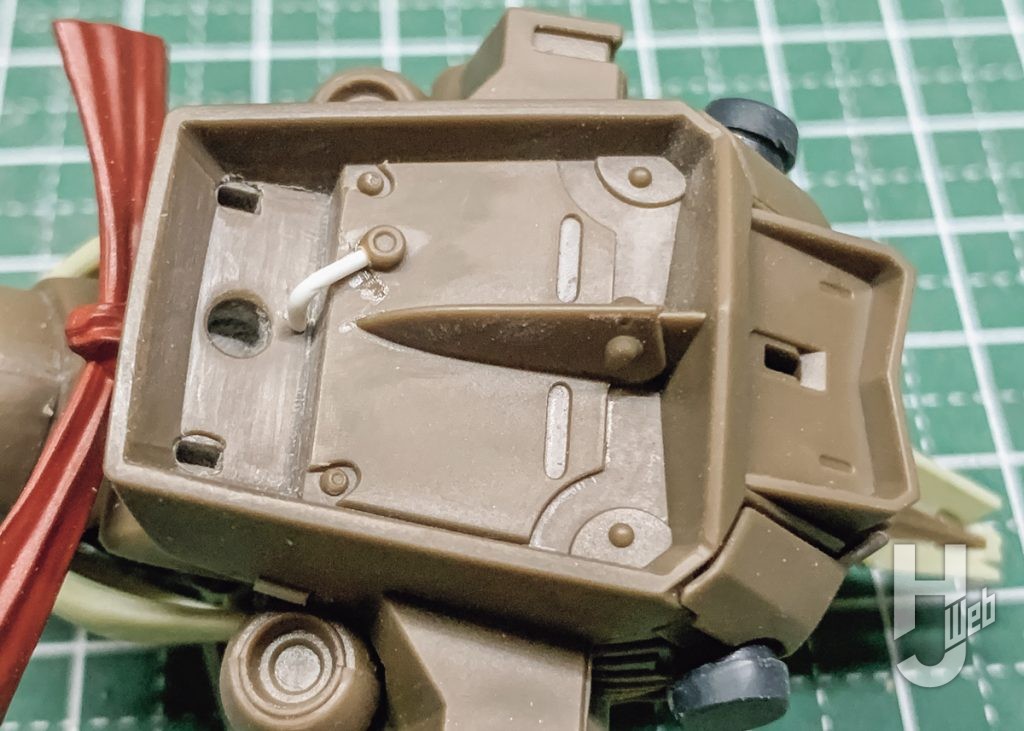 ▲背部は聖剣エル・ミュートを取り外し可能。またケーブル類はいったん削り取って、上腕と同様の工程で新造したものに置き換えた