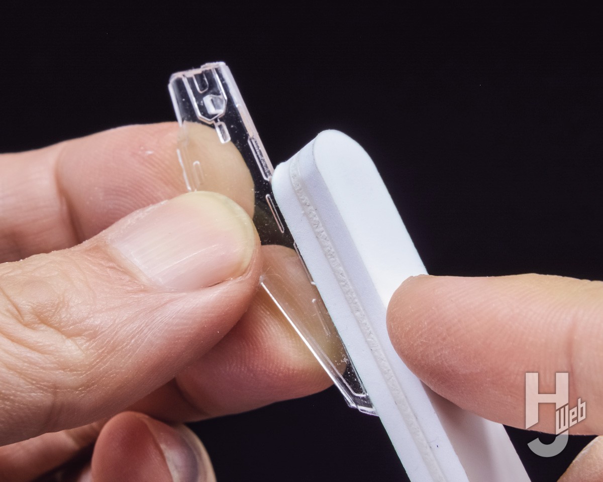 ▲ ウェーブ ヤスリスティックフィニッシュで曇った部分を磨きます。このヤスリはクリアーパーツの磨きに非常に適しており、少し磨けば透明度があっという間に回復します。キュッ! キュッ! とプラとヤスリが擦れる音が変化してくるのが仕上がってきた証です