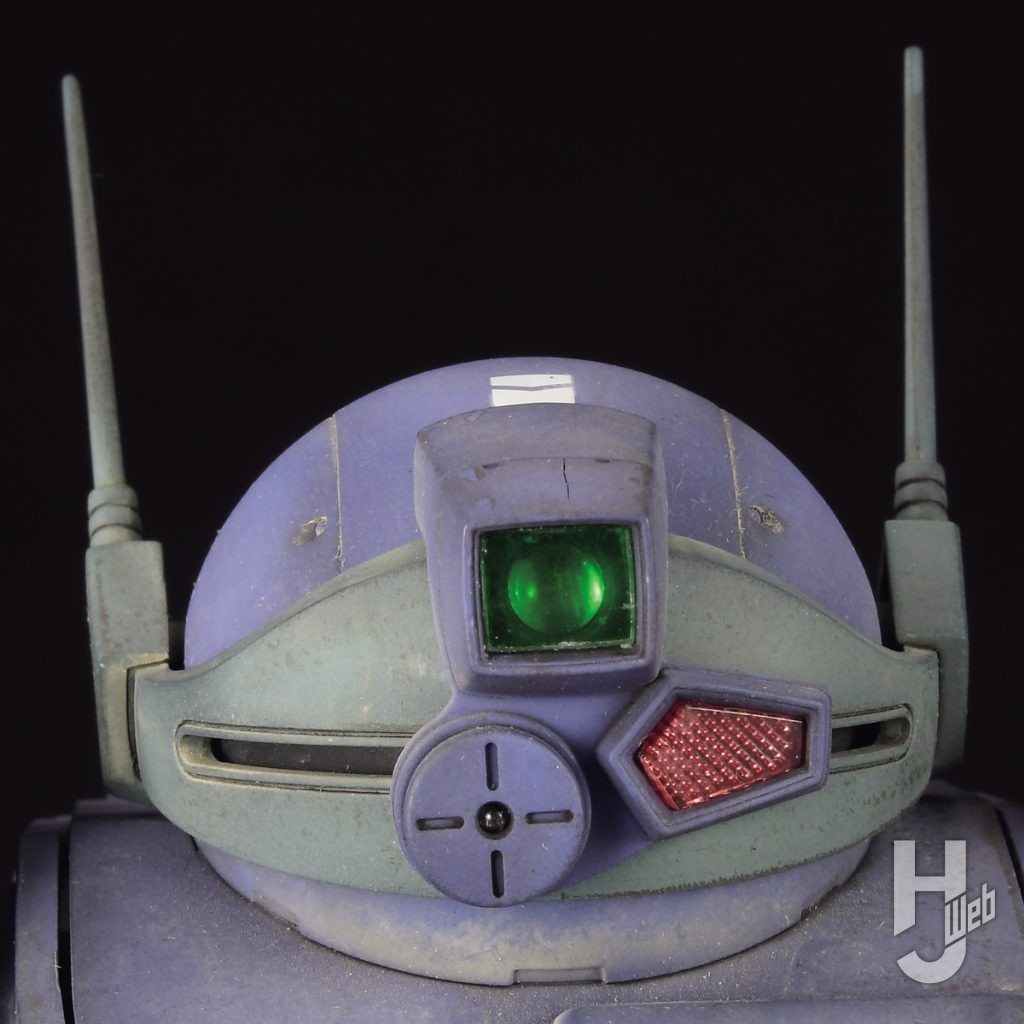 ▲徹底的にこだわりぬいた頭部形状は、キットの見どころポイントのひとつ。レンズはコア部分も彫刻された深みのある無色クリアーパーツで構成されている