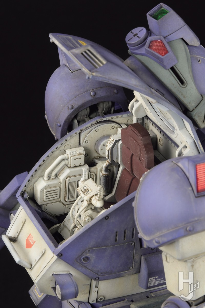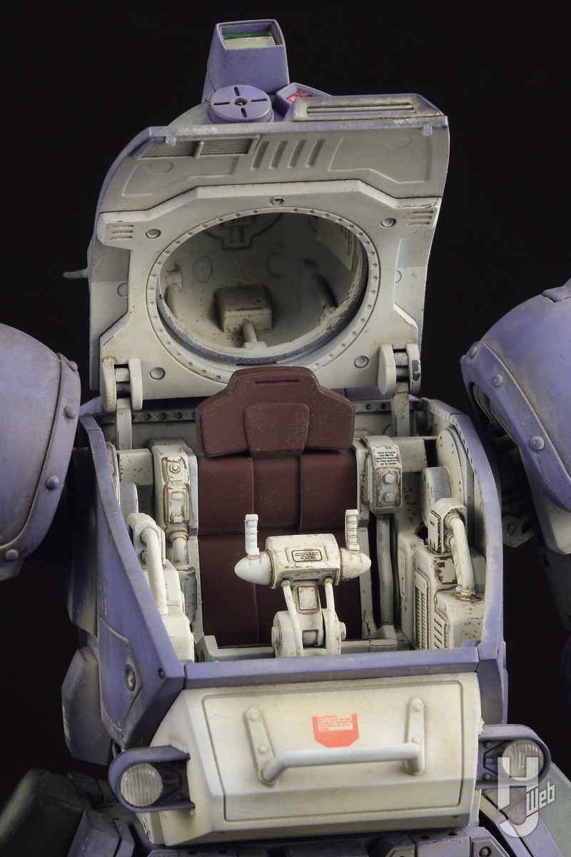 ▲コクピットハッチは開閉可能で、内部もしっかりと作り込まれている。内部はシートをブラウン、その他を白を基調にして塗り分けてアクセントとしている