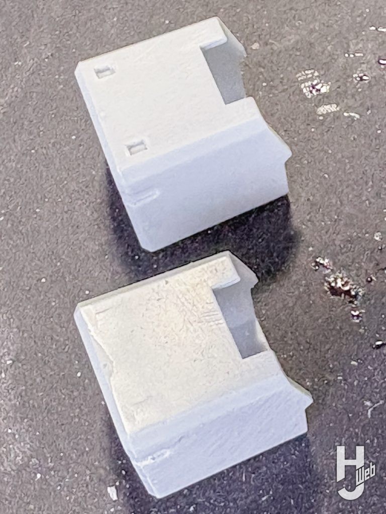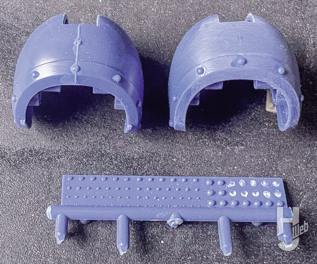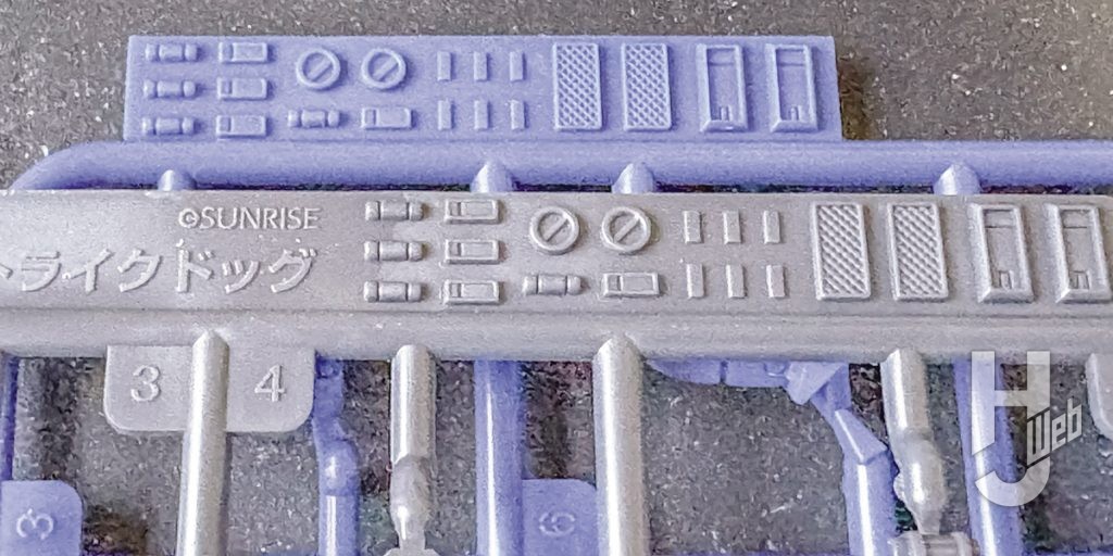 ▲成型の都合で甘くなっているモールドは、深く彫り直した他、ランナータグに彫刻されたディテールアップタグのディテールを活用。ナイフで削ぎ落として使用している