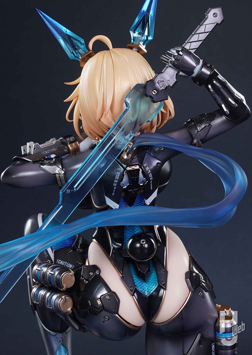 ▲太刀は一部差し替えで抜刀状態にすることができ、腰部のバックパックも着脱が可能だ。お約束のバニーしっぽに変更できる遊び心あるオプションパーツも嬉しいかぎり