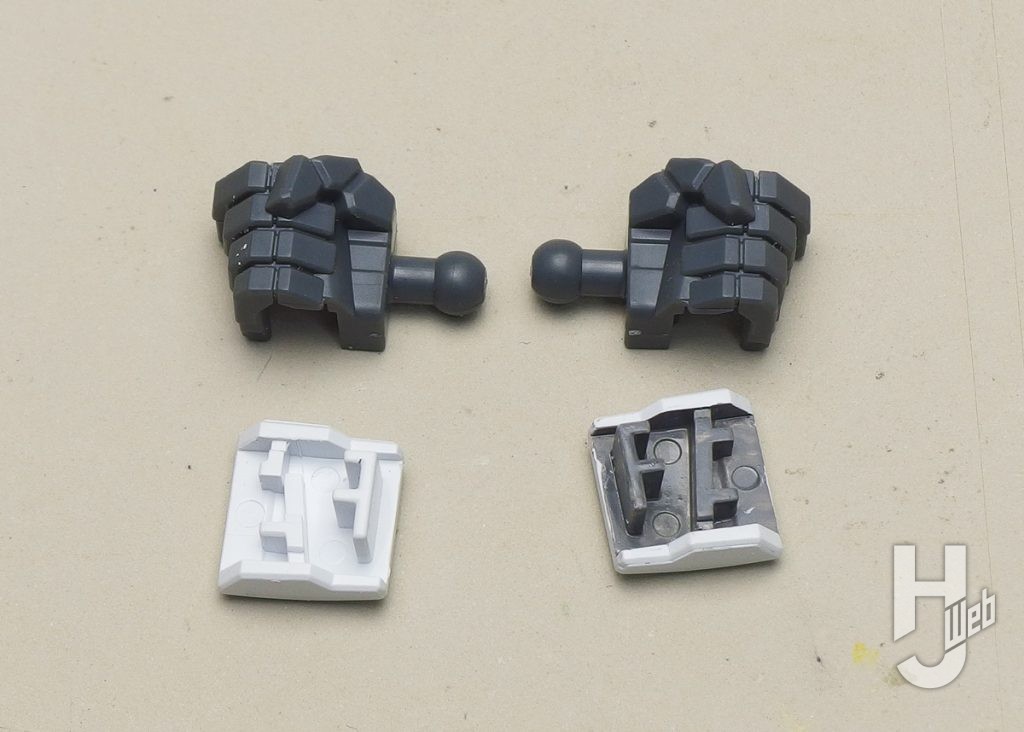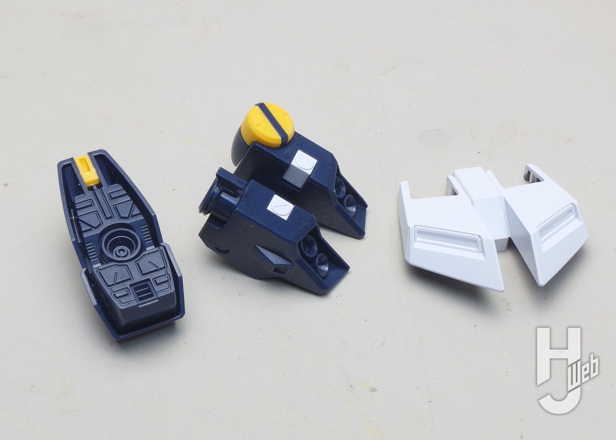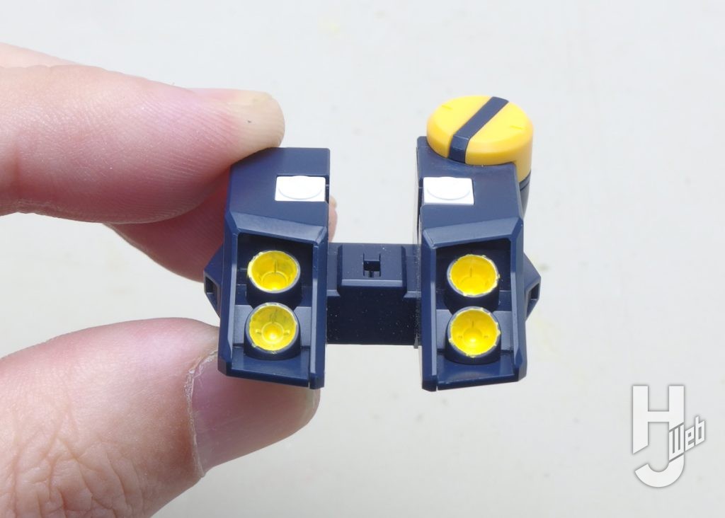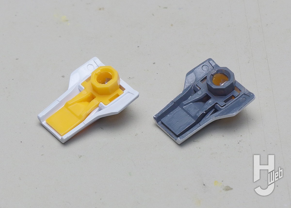 ▲腰側面のアーマー。白、黄色のパーツ裏面をグレーで揃え、周囲のフチを境目にしています