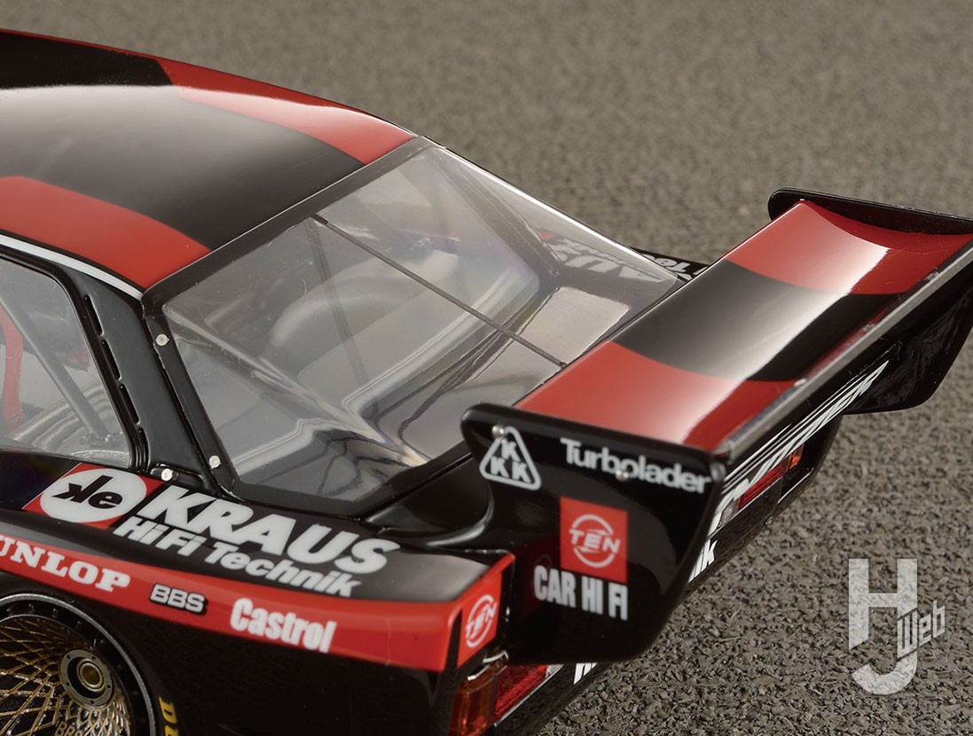 今回車高は変更はせずに製作していますが張り出した前後フェンダーに前後の巨大スポイラー、Gr.5車両は迫力満点でカッコイイですね。ちなみに空力対策のリアの2重ガラスは効果有ったのでしょうか?
