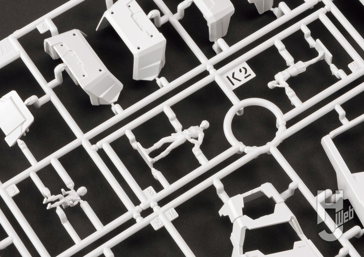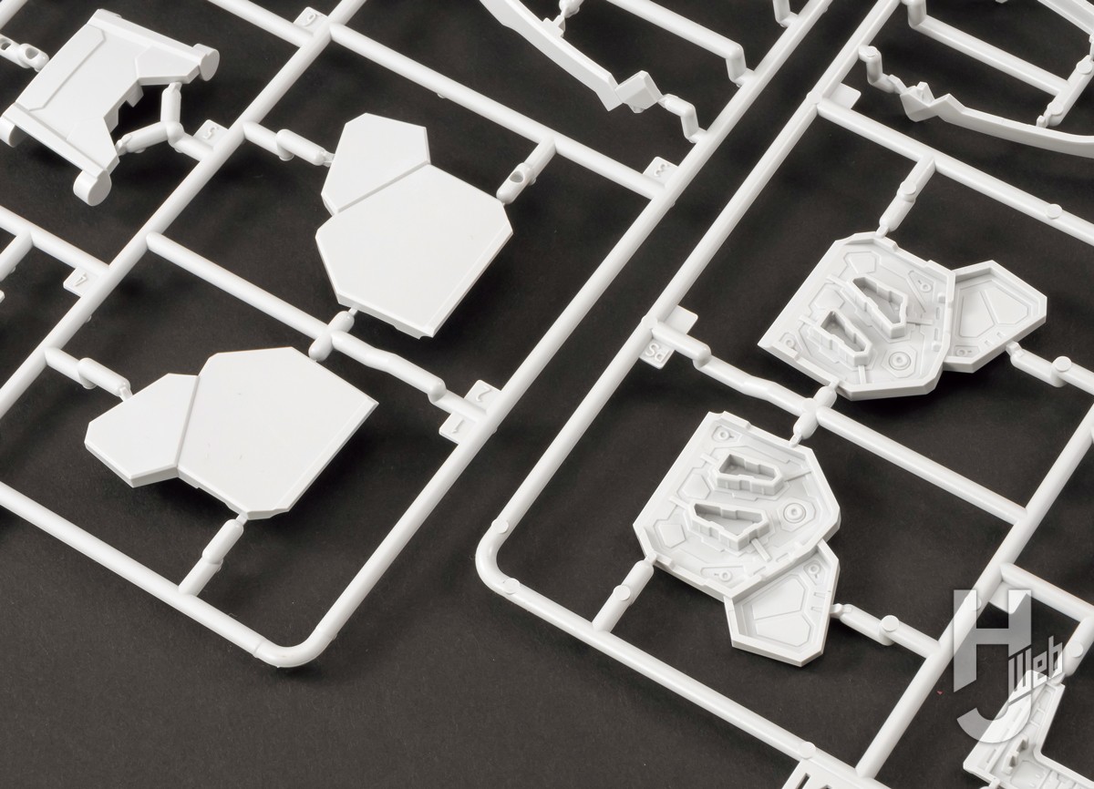 さまざまなマテリアルを採用することでプラスチックだけでは到達できない領域でのメカニカル表現に挑んだPG UNLEASHED νガンダム。だが、本アイテムではキットの大部分を占めるプラパーツにもさまざまな情報が刻み込まれている。まずはそれらをランナー状態で見ていこう。