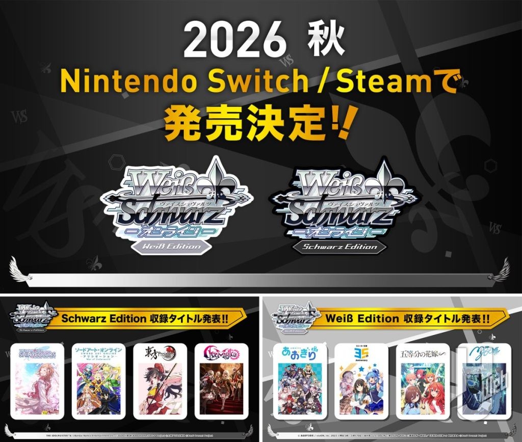 『ヴァイスシュヴァルツ』のデジタルゲーム「ヴァイスシュヴァルツオンライン」が、2026年秋 Nintendo Switch/Steam にて登場!