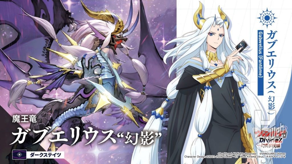 続けて、4月10日(金)に発売されるブースターパック「赫月ノ使者」では、TVアニメ「カードファイト!!ヴァンガード Divinez 幻真星戦編」でガブエリウス(幻影)が使用する《魔王竜 ガブエリウス”幻影”》が登場するほか、SEGAが手掛けるドラマチックアドベンチャーゲーム「龍が如く」シリーズのコラボカードが収録されます!