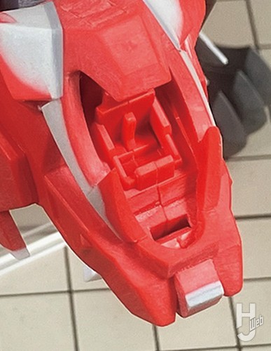 可動に配慮が必要な肩や脚アーマーの肉抜き穴はフレームと可動に干渉せず、重くならないようプラ板でフタをします。脚の鉤爪とたてがみの肉抜き穴はポリパテで埋めました。たてがみのギミックはキットそのままですが、塗装すると可動や塗面に影響があるため、モールドを追加してフレーム色で塗り最小限の塗膜としています。