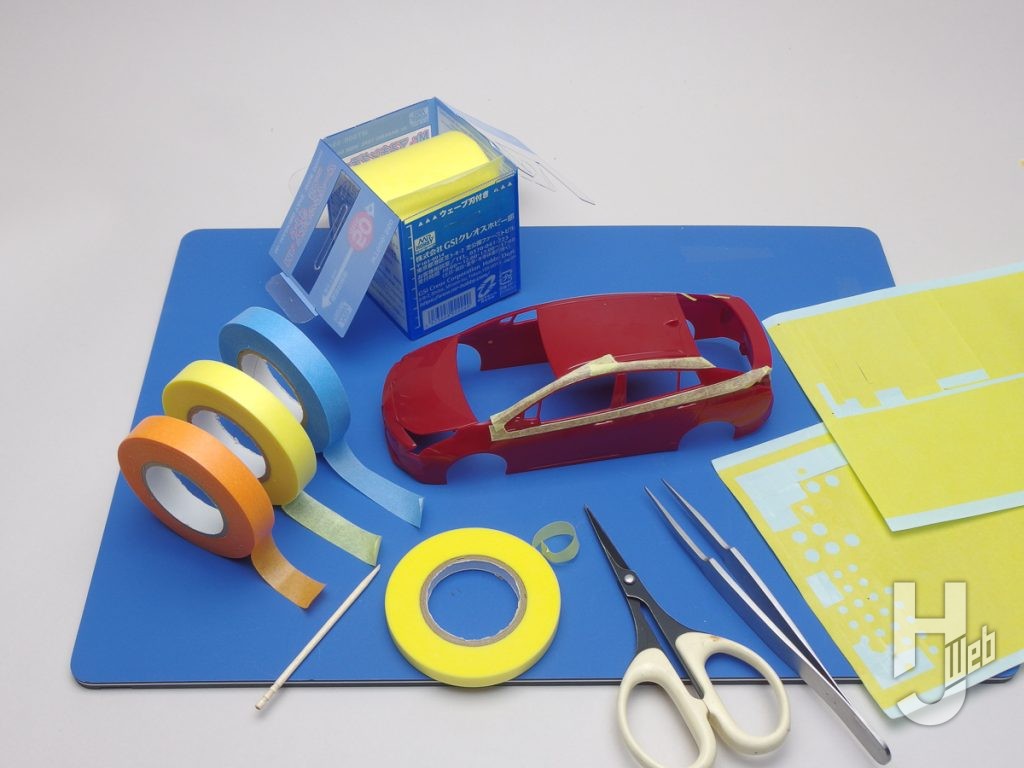 ▲パーツの仮組みや接着剤が硬化するまでの仮固定。パーツ面や塗装面を傷めずに貼って剥がせるのはマスキングテープのもう一つの主用途とも言えます