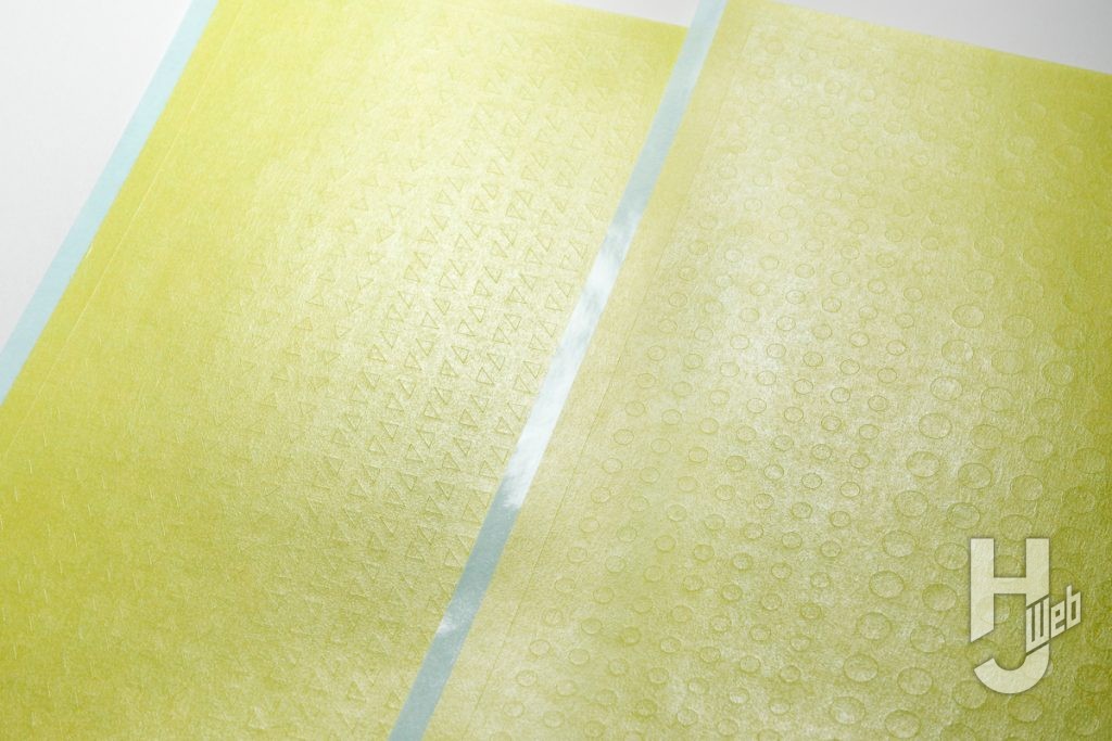 ▲3種は幅の違いのみ。やや透けぎみの黄色でしなやかに扱えるテープ。ノリ面もベタ付き過ぎず、手でも簡単にカットできます
