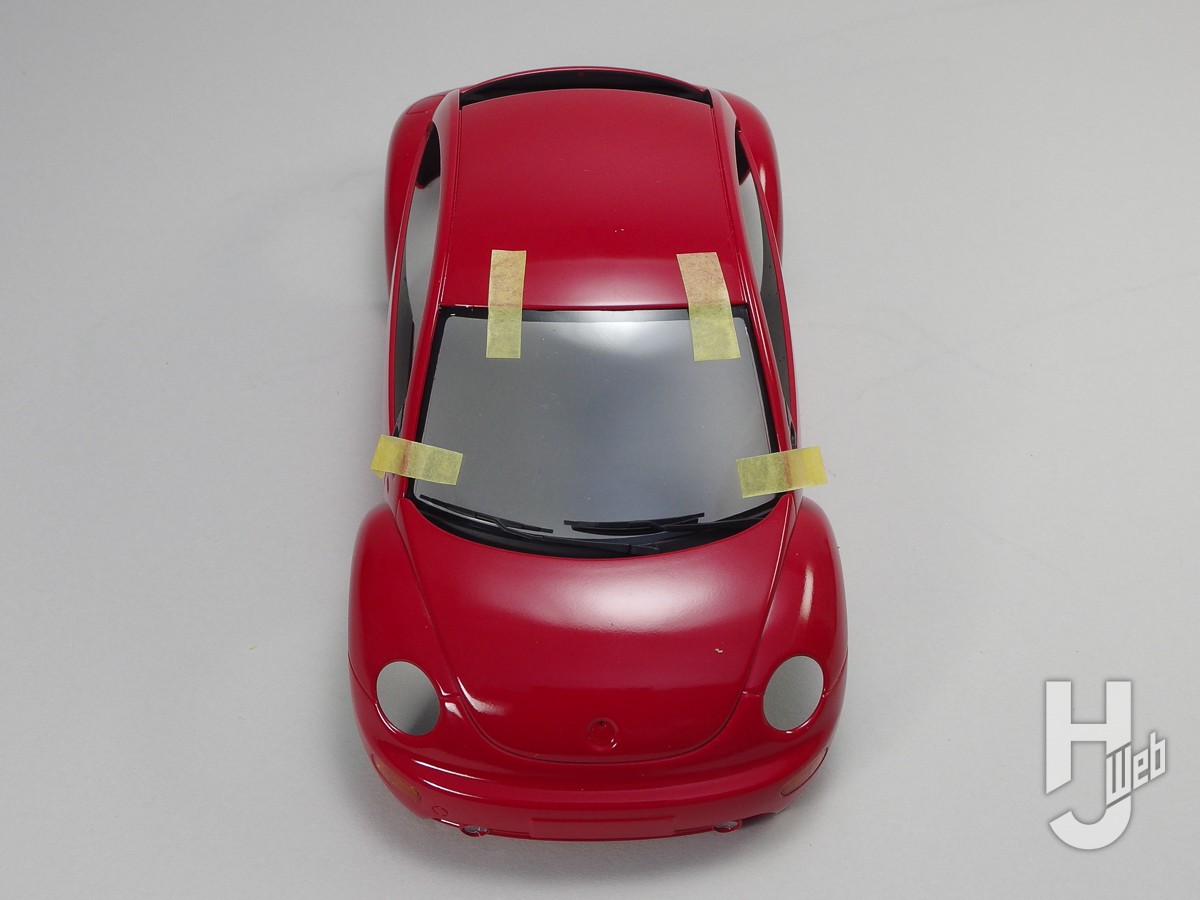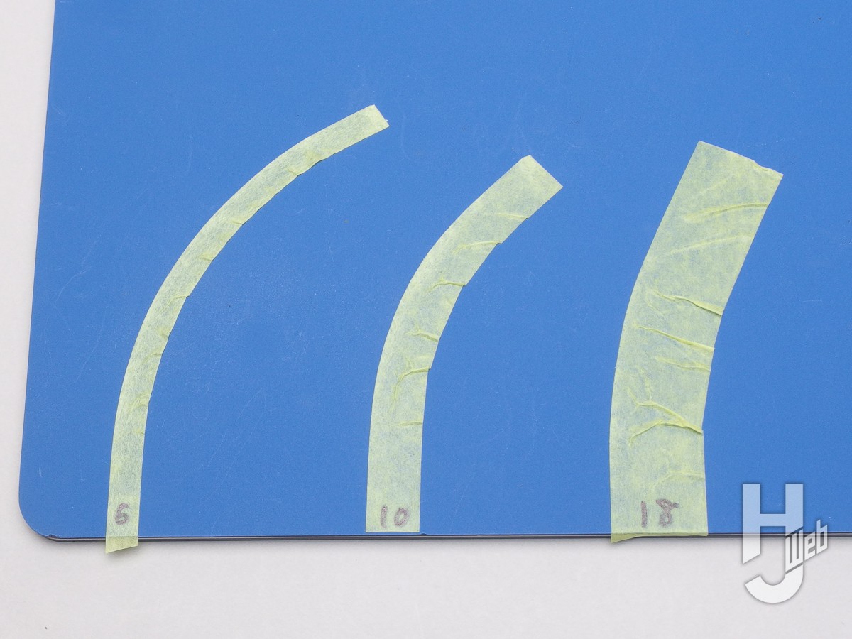 ▲マスキングテープは柔軟性があるので、緩いカーブに曲げつつ貼ることができます。細い方がより曲げやすく、カーブの外側はスムーズなラインに貼りやすいので、こちらをマスクの“境界”にするのが使いやすいです
