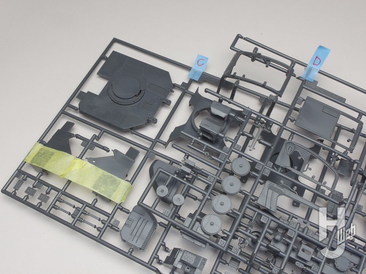▲ランナーから切り離したパーツを戻して固定したり、細かなパーツやクリアーパーツを無くさないようにテープを貼っておくなど、パーツの保管にも助かります