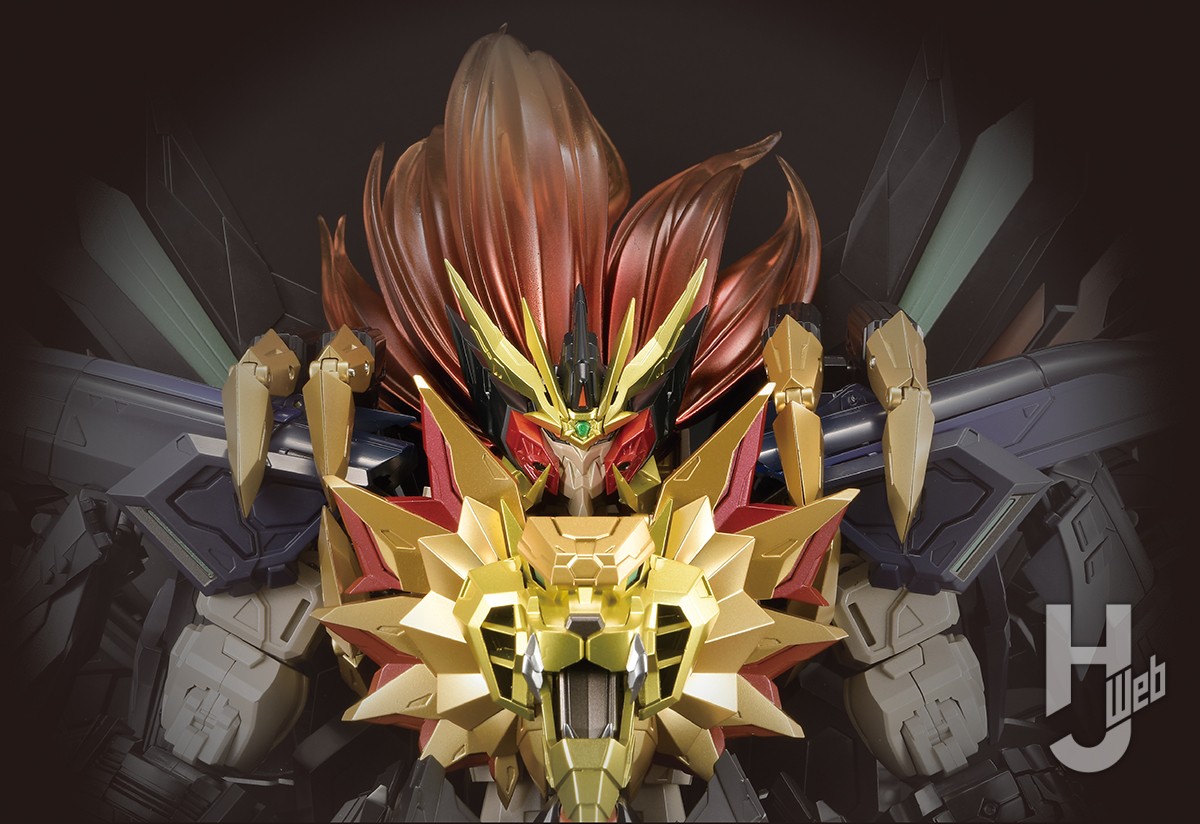 ▲AMAKUNI超機神 ジェネシックガオガイガーは頭頂高で約30cm。ガジェットフェザーを展開させたときの全高は約41cm、全幅なら約55cmというビッグサイズモデルだ。AMAKUNI機神 ジェネシックガオガイガーからの設計流用はいっさいなくすべて完全新規モデルとして造形されている。細部形状やメカモールドも大きさに見合ったバランスが考慮されており、あらゆる面で隙のない仕上がりになっている