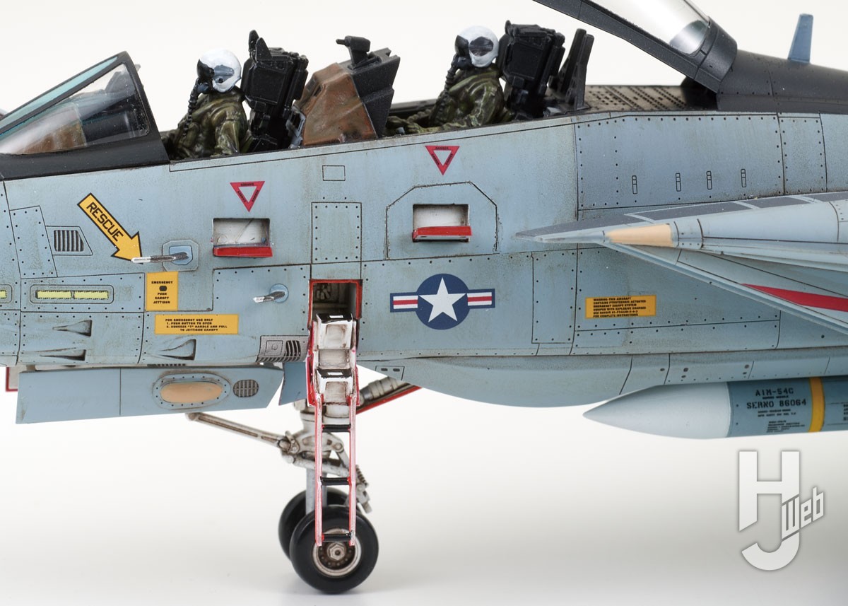 タミヤの最新F-14Dはとにかくシャープ、コクピットインテリアも風防も剃刀のような切れ味と計算されつくしたクリアランスがもたらすギチギチ感で小さな実機を表現しています。やはり作るなら最新のタミヤに限る。そんな印象を一層強めました。