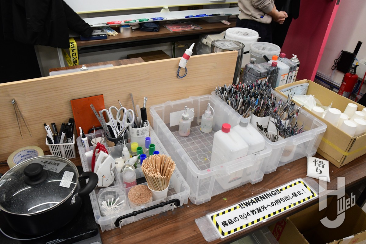 設備と一部の材料は授業中であれば自由に使えますし、放課後であれば申請をすれば使うことが出来ます。場合によっては卒業生も自主作業に使用することもあります。