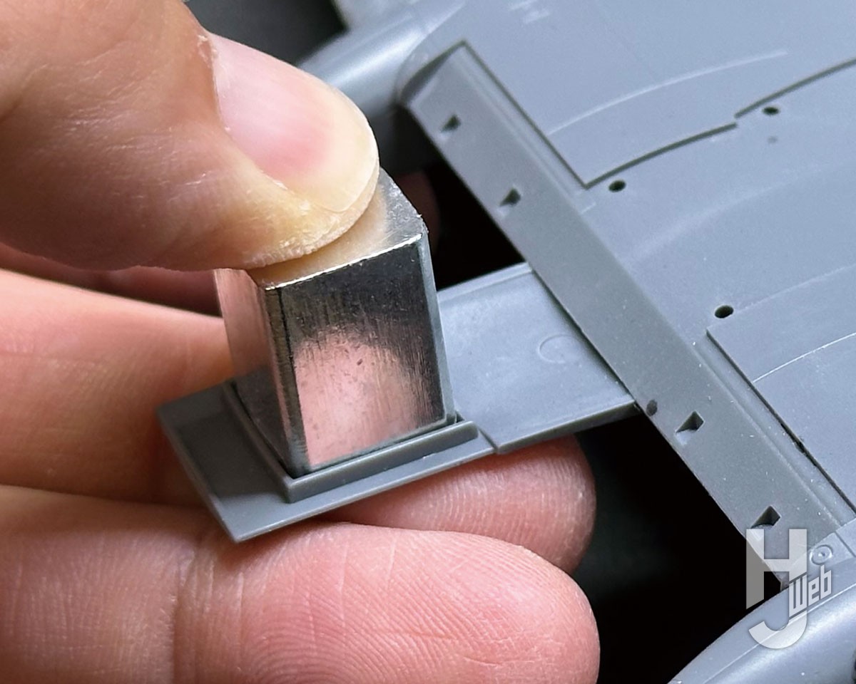 他にもフォーメーションライトやAOAプローブなどをシャープに再現できるエッチングパーツや、尻もちを防止するための専用設計の金属製オモリまで最初から付属しており、これがピタリと収まる設計になっているのも嬉しいポイントです。タイヤにはグッドイヤーのロゴまで彫刻されているのはこまかいながらも嬉しいポイントではないでしょうか。