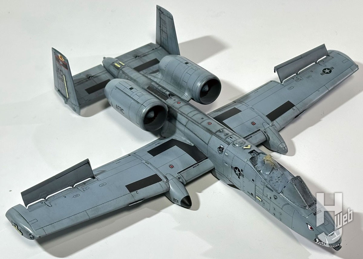 まずこのキットですが、1/72スケールとは思えないほど機体表面のディテールが緻密に再現されています。パネルラインは繊細な凹モールドで、そしてA-10の武骨さを象徴するリベットは、凸モールドでびっしりと表現されています。この凹凸のモールドが混在することで生まれる情報量は、塗装とウェザリングを経ることで、圧倒的なリアリティを生み出します。