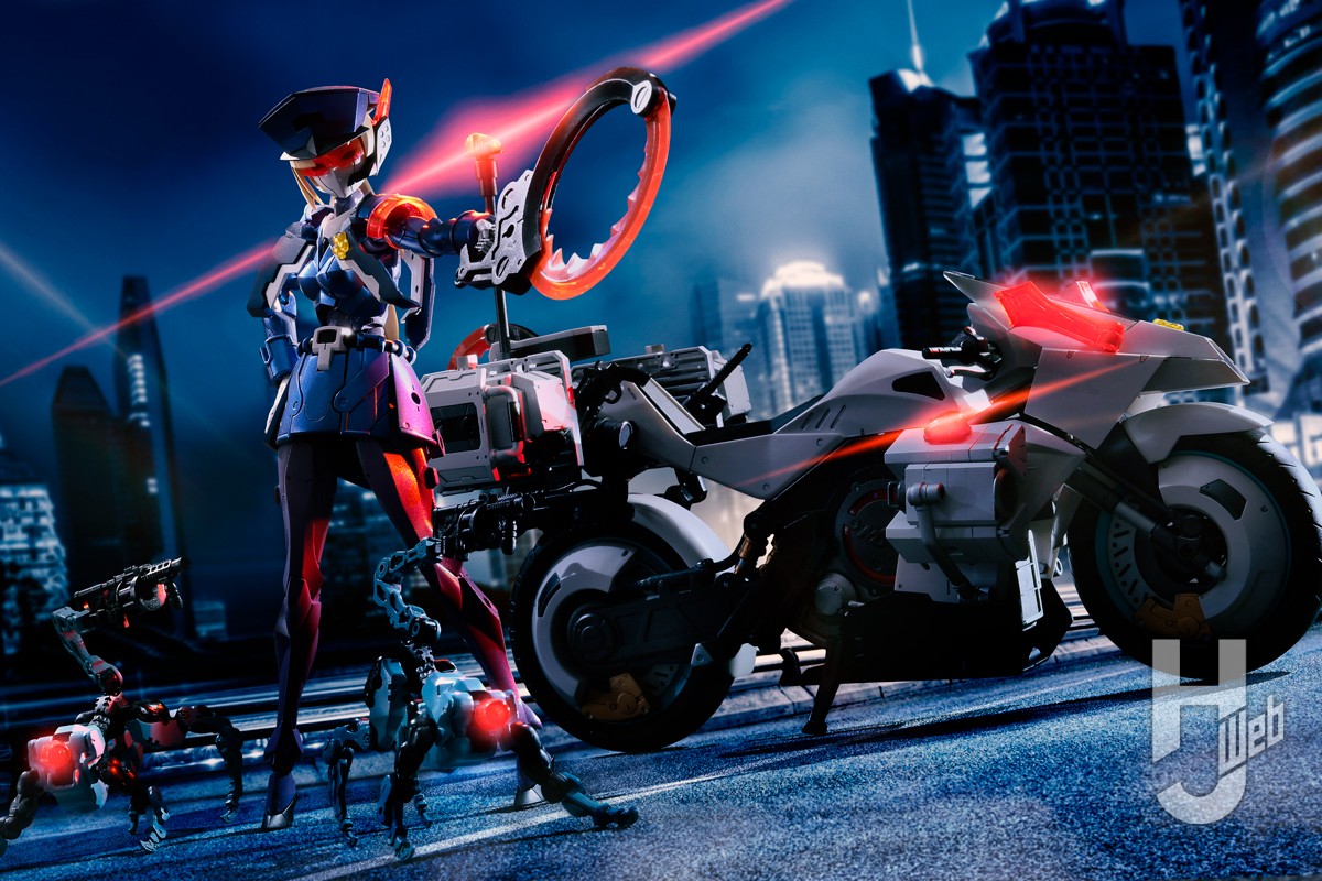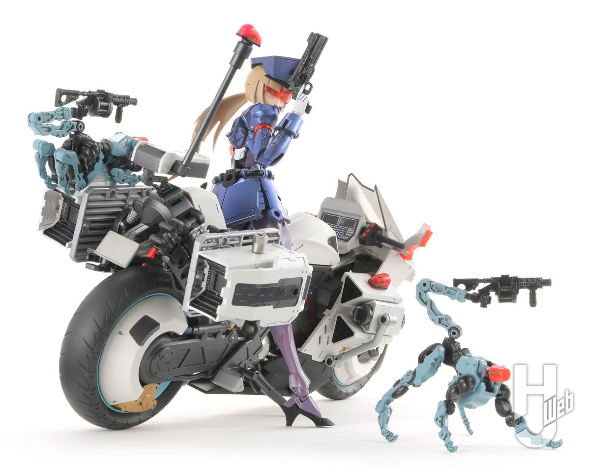『無限邂逅メガロマリア』警察官モチーフのアナザー「ヴァリアント」を、ギミック満載のビークルも加えて、白バイ機動隊風にカスタマイズ!