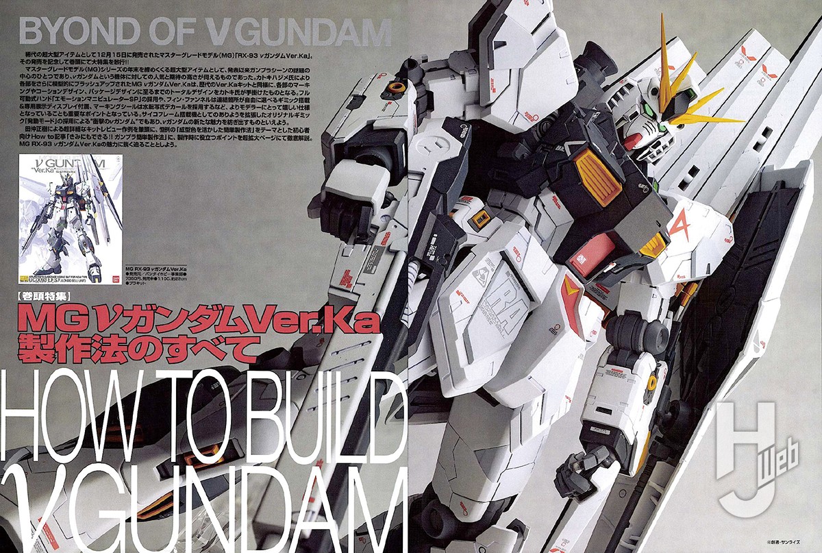 MG Ver.Kaシリーズの節目となる10周年アニバーサリーモデルとして、シリーズ第11弾目にリリースされたMG νガンダム Ver.Ka。ユニコーンガンダムから導き出した全身に張り巡らされたサイコフレームに、より洗練されたシルエットなど、ファンが持つこれまでのνガンダム像をさらに進化させたものだった。月刊ホビージャパンでは以降、νガンダムモデルのフラッグシップとして幾度となく作例として登場。2026年3月号の清水圭による筆塗り作例も合わせ、3度も掲載されている。
