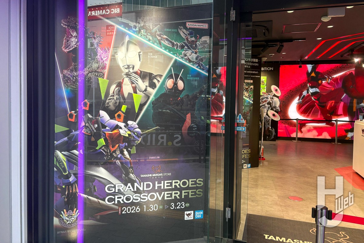 2026.01.30JR秋葉原駅の電気街口を出てスグの場所にある「TAMASHII NATIONS STORE TOKYO」にて、「GRAND HEROES CROSSOVER FES」が開催中! エヴァンゲリオン、シン・ゴジラ、シン・ウルトラマン、シン・仮面ライダー、そしてガンダムシリーズという国民的ヒーローが一堂に会するフィギュアイベントだ。展示アイテムの中には本イベント初披露の物もあるので、最新情報をいち早く知りたい人も要チェック。本記事ではそんな中から注目展示をピックアップしてお届け!!