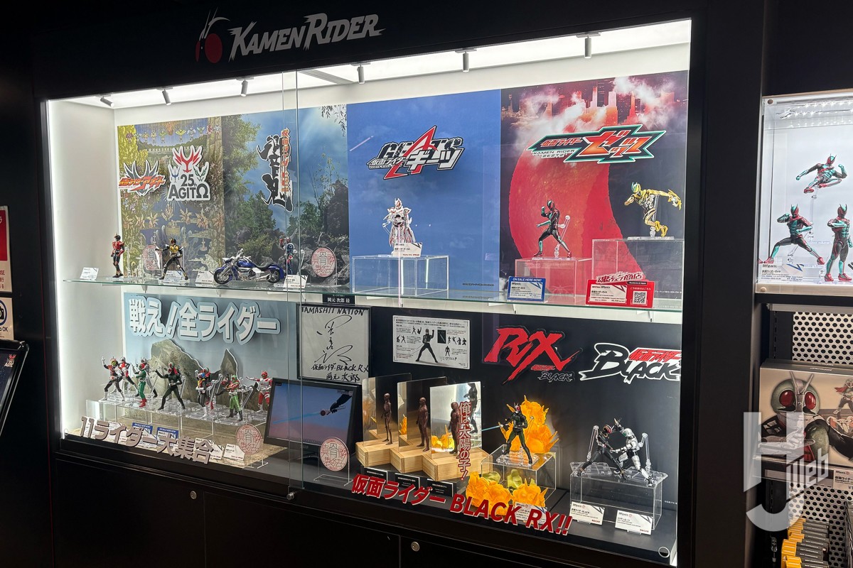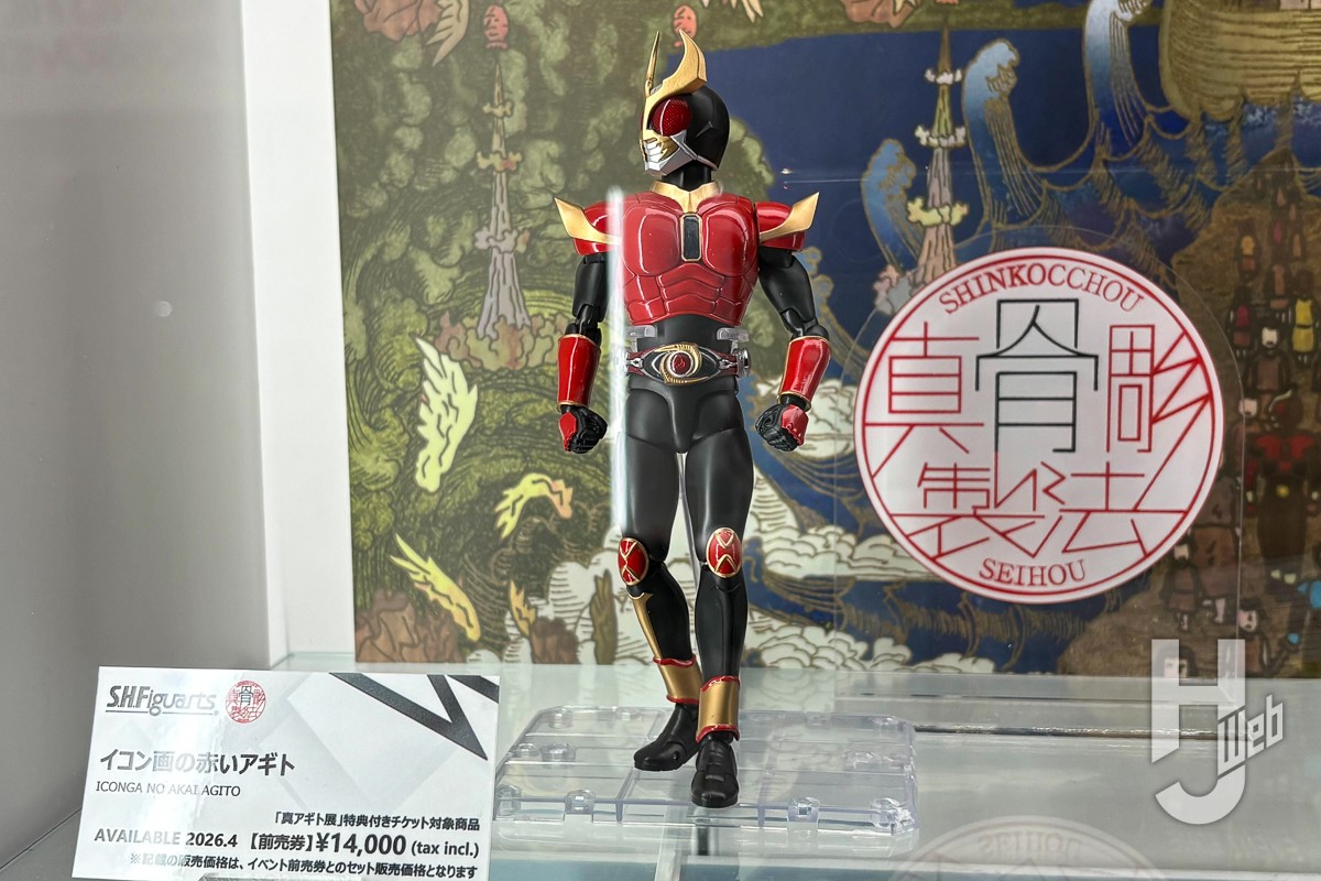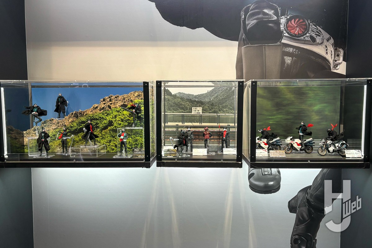 『シン・仮面ライダー』からは「常用サイクロン号」「SHOCKER下級構成員」が参考展示中。そして「クモオーグ」が商品化決定!! 昭和・平成・令和仮面ライダーでは「S.H.Figuarts(真骨彫製法) 仮面ライダーBLACK RX」「イコン画の赤いアギト」の実物展示や「凱火」「仮面ライダーギーツIX」の参考展示が見られる。
