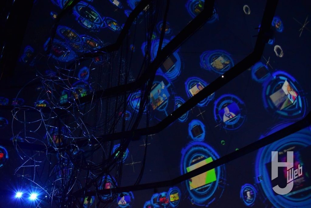 まず来場者を出迎えるのは「巨大電脳ネットワークビジュアライザー “Nerve Net”」と「“知の遺跡” “World Tree: Ghost and the Shell”」だ。「Nerve Net」では「攻殻機動隊」全アニメ作品の内容を検索できる端末が用意されており、情報の海を泳ぐ体験ができる検索型インスタレーションとなっている。